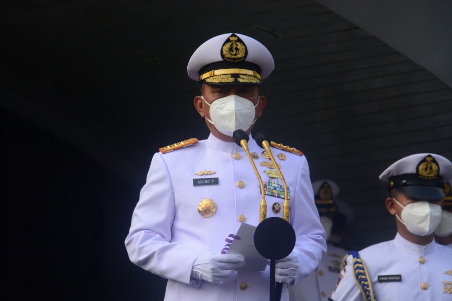 Komandan Pusat Hidro-Oseanografi TNI Angkatan Laut (Danpushidrosal) Laksamana Madya TNI Dr. Agung Prasetiawan M.A.P., memimpin upacara Laporan Korps kenaikan pangkat kenaikan pangkat Perwira, Bintara dan Tamtama personel Pushidrosal periode 1 Oktober 2021 di Lapangan Apel Markas Komando (Mako) Pushidrosal Jl. Pantai Kuta V/I, Ancol, Jakarta Utara. Jum’at (1/10/2021).