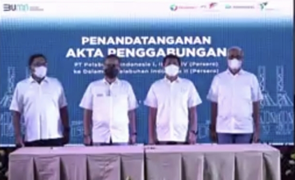 Penandatanganan akta penggabungan tersebut dilakukan Direktur Utama PT Pelabuhan Indonesia I (Persero) Prasetyo, Direktur Utama PT Pelabuhan Indonesia II (Persero) Arif Suhartono, PT Pelabuhan Indonesia III (Persero) Boy Robiyanto dan Direktur Utama PT Pelabuhan Indonesia IV (Persero) Prasetyadi disaksikan langsung secara virtual oleh Wakil Menteri II Kartika Wirjoatmodjo dan Notaris.