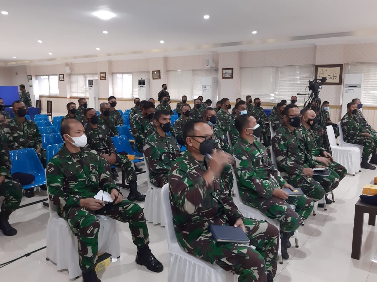 Satya Wira Jala Dharma Sejumlah perwira di jajaran Komando Lintas Laut Militer (Kolinlamil) mendapat pembekalan tentang Proses Pengambilan Keputusan Militer (PPKM) yang disampaikan Perwira Sesko TNI Kolonel Laut (P) Arya Delano di Mako Kolinlamil, Tanjung Priok, Jakarta Utara, Rabu (6/10/2021).