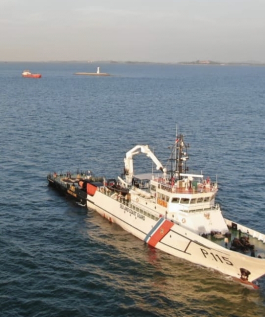 Setibanya dilokasi KN. Kalimasadha -P. 115 yang dinakhodai oleh Capt. Putra Wardana langsung berkoordinasi dengan Kapal Patroli KN. 366 milik KSOP Tanjung Balai Karimun yang juga turut dikerahkan dalam aksi tersebut.