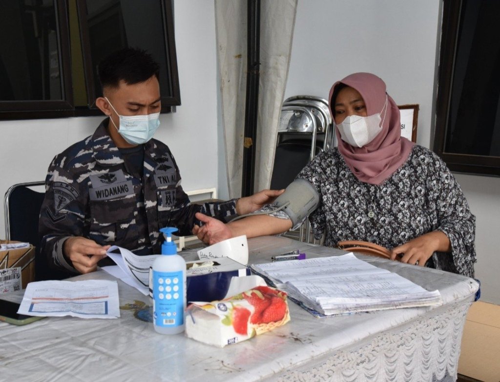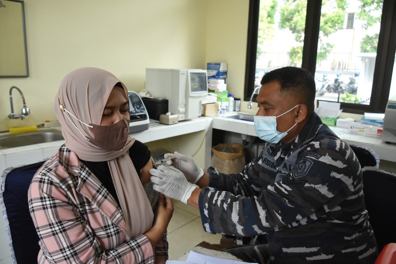 Tim Tenaga Kesehatan (Nakes) Pusat Hidro-Oseanografi TNI Angkatan Laut (Pushidrosal) kejar target vaksinasi Covid-19 melalui vaksinasi rutin bagi masyarakat maritim yang dilaksanakan di Markas Komando (Mako) Pushidrosal, Jalan Pantai Kuta V/I, Ancol Timur, Jakarta Utara. Jum’at (8/10/2021).