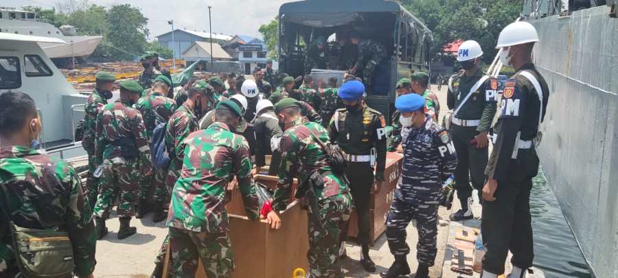 Dalam debarkasi tersebut, KRI Teluk Lampung 540 menurunkan personel dan material satgas lainnya.