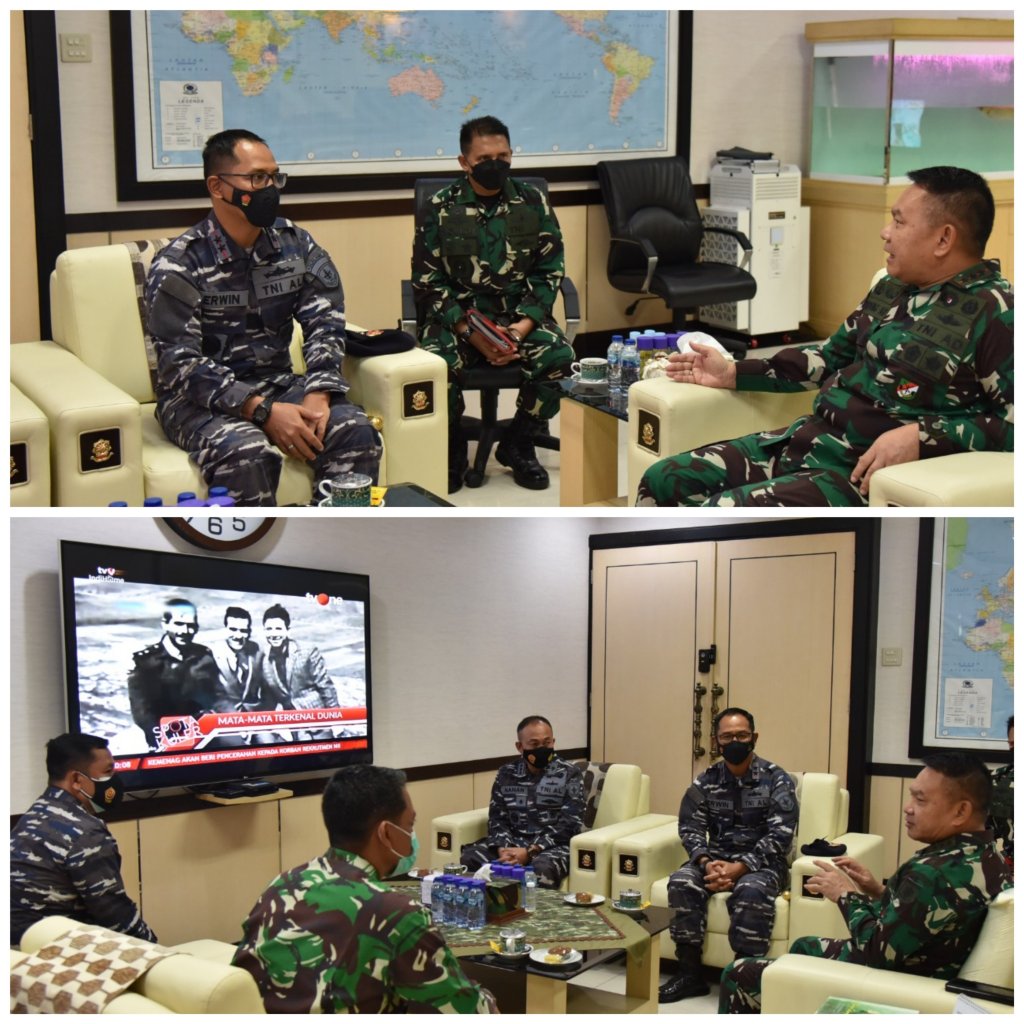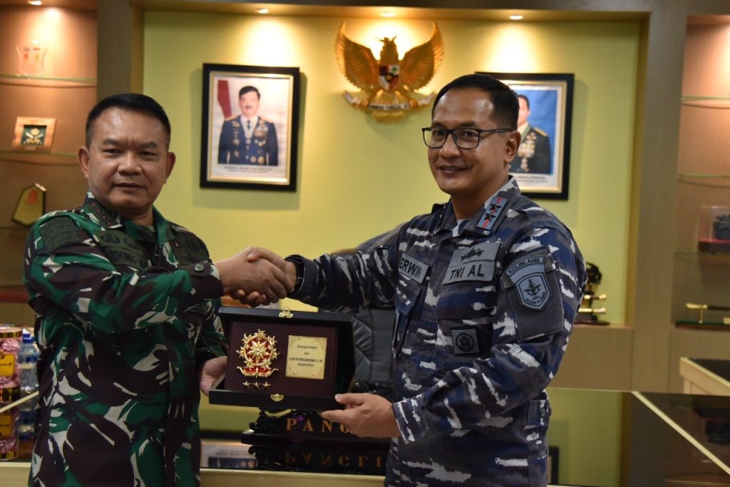 Satya Wira Jala Dharma. Panglima Komando Lintas Laut Militer Laksda TNI Erwin S Aldedharma melakukan kunjungan kerja ke Markas Komando Cadangan Strategis Angkatan Darat (Makostrad) di Gambir, Jakarta Pusat, Selasa (12/10/2021).