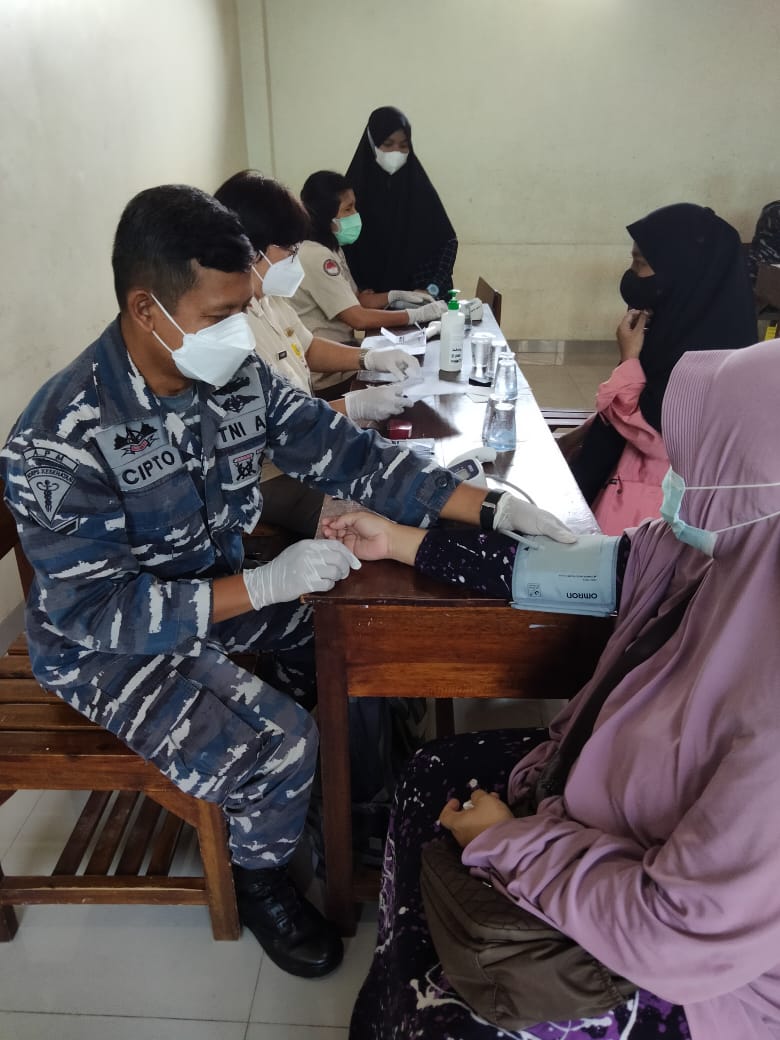Serbuan vaksinasi kali ini melibatkan 25 tenaga kesehatan yang tergabung dari berbagai instansi, diantaranya Dinas Kesehatan (Diskes) Pushidrosal 5 Personel, Diskes Koarmada I 15 Personel, serta Diskes Lantamal III 5 Personel.