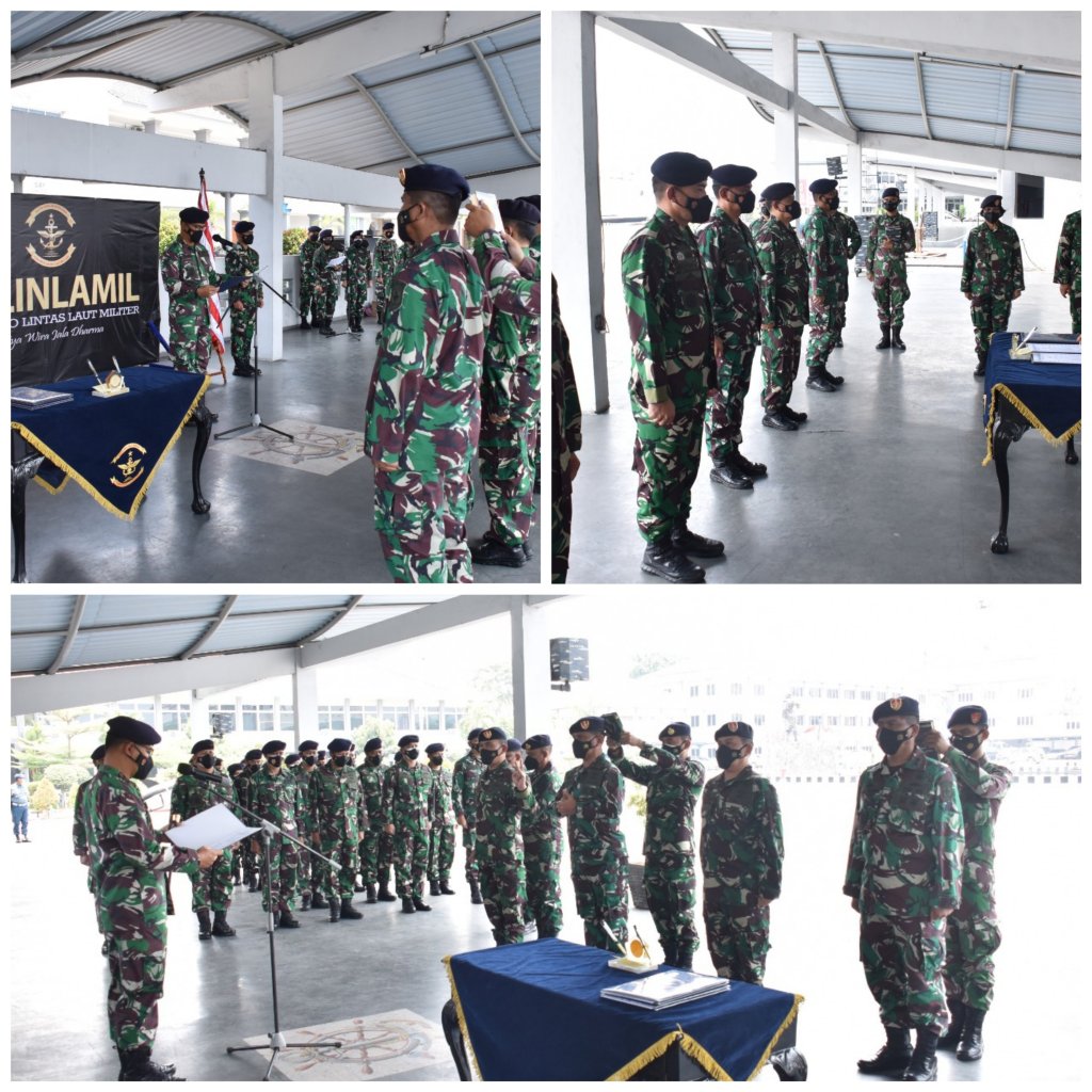 Satya Wira Jala Dharma. Panglima Komando Lintas Laut Militer (Kolinlamil) Laksda TNI Erwin S Aldedharma, pimpin prosesi upacara pergantian tiga jabatan di lingkungan Kolinlamil. Acara itu, digelar di Lapangan Mulyono Silam, Mako Kolinlamil, Jakarta Utara, Selasa (12/10/2021).