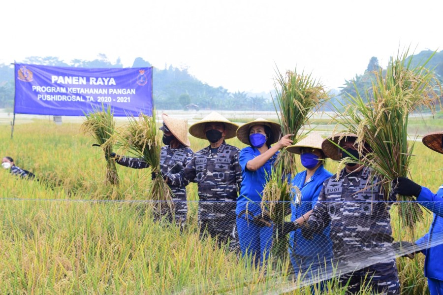 Program Ketahanan pangan Pushidrosal berupa padi ditanam di lahan seluas dua hektar di kawasan desa Pasir Angin, Kecamatan Cileungsi Kabupaten Bogor. Dari hasil panen ini terkumpul padi sebanyak delapan ton.(MM-01).