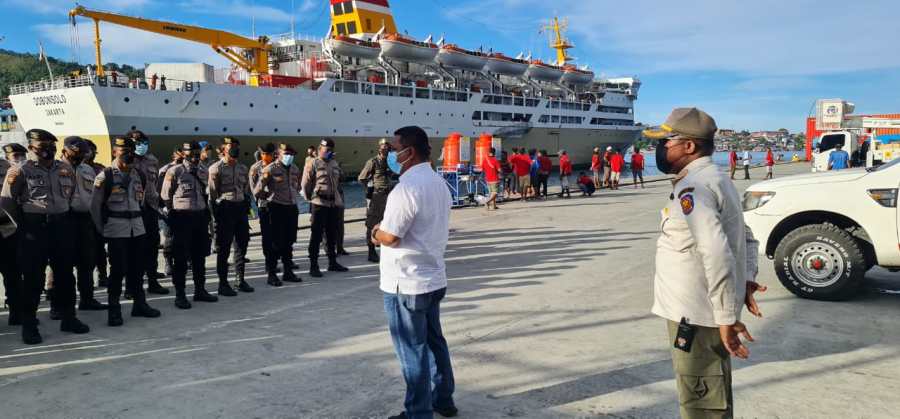 Saat meninjau pelabuhan Capt Roni Fahmi didampingi Willem Thobias Fofid Kasi Lalu Lintas Pelabuhan, Kasi KBPP Ferdinand, Kapolsek KP3 Iptu Richard Rumboy, Manager Operasi PT. Pelindo (Persero) Jayapura, Kabag Operasi PT. Pelni Jayapura Robby, perwakilan Kantor Kesehatan Pelabuhan (KKP) Jayapura dan Tim Teknis dari masing-masing stakeholders Pelabuhan Jayapura.
