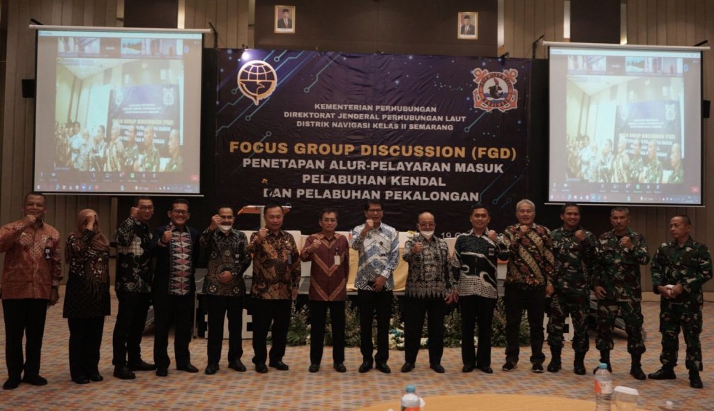 FGD penetapan Alur-Pelayaran masuk Pelabuhan Kendal dan Pelabuhan Pekalongan ini turut menghadirkan narasumber dari Direktorat Kenavigasian, Direktorat Kepelabuhanan, Pushidrosal TNI AL, Distrik Navigasi Kelas II Semarang selaku tim survey. Peserta kegiatan terdiri dari instansi pemerintah dan steakholder terkait, baik hadir langsung di ruangan ini maupun secara virtual.(Red-MM).