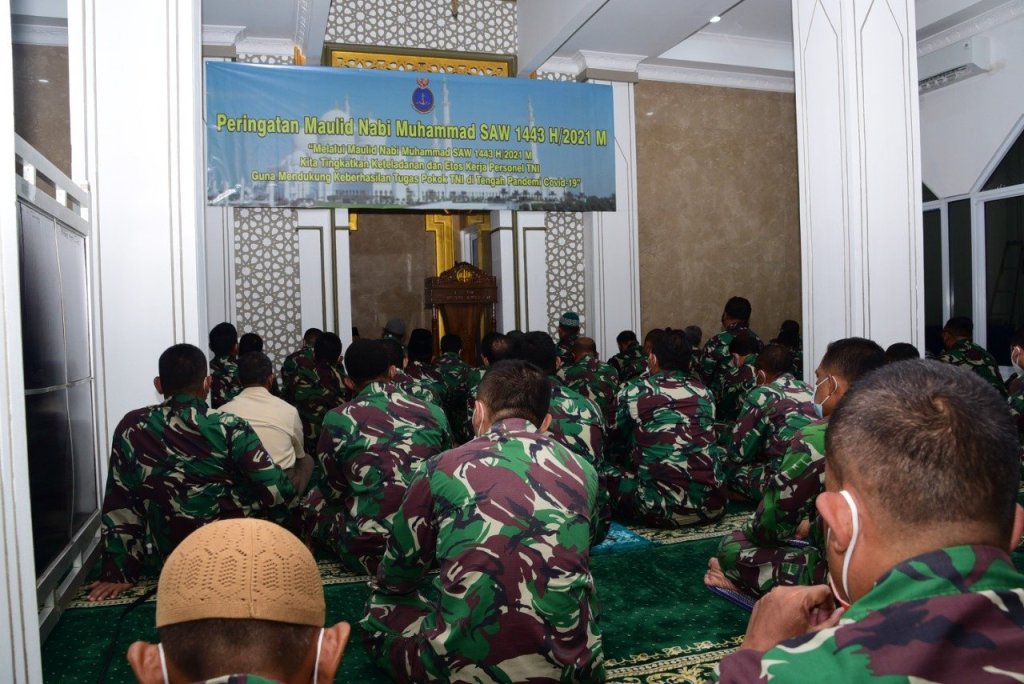 “Perjalanan hidup Nabi Muhammad SAW dalam mengemban amanah Tuhan YME untuk Syiar Islam penuh dengan tantangan dan cobaan yang berat, namun rasul senantiasa tabah dan tawakal menghadapinya. Hal ini tercermin pada sikap beliau yang sabar, rendah hati, penyayang dan pemaaf dengan akhlakul karimah tersebut berhasil memperbaiki moral bangsa Arab, serta mensyiarkan ajaran Islam ke seluruh penjuru dunia,” tambah Danpushidrosal.