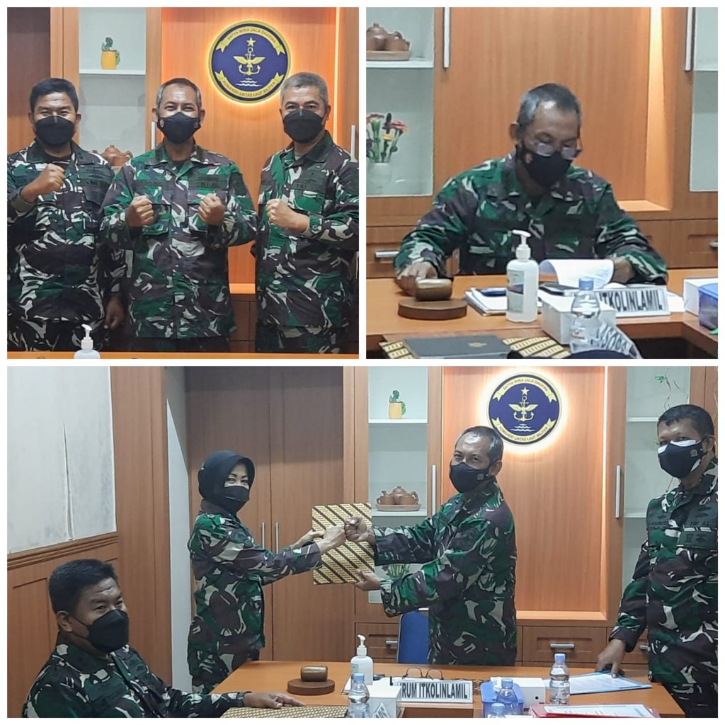 Satya Wira Jala Dharma. Dengan menerapkan physical distancing, Inspektur Umum Inspektorat Kolinlamil Kolonel Laut (E) Ismono mewakili Inspektur Kolinlamil menutup pelaksanaan audit kinerja Staf Operasi dan Polisi Militer Kolinlamil, di Rupat Itkolinlamil, Mako Kolinlamil, Jakarta Utara, Senin (25/10/2021).