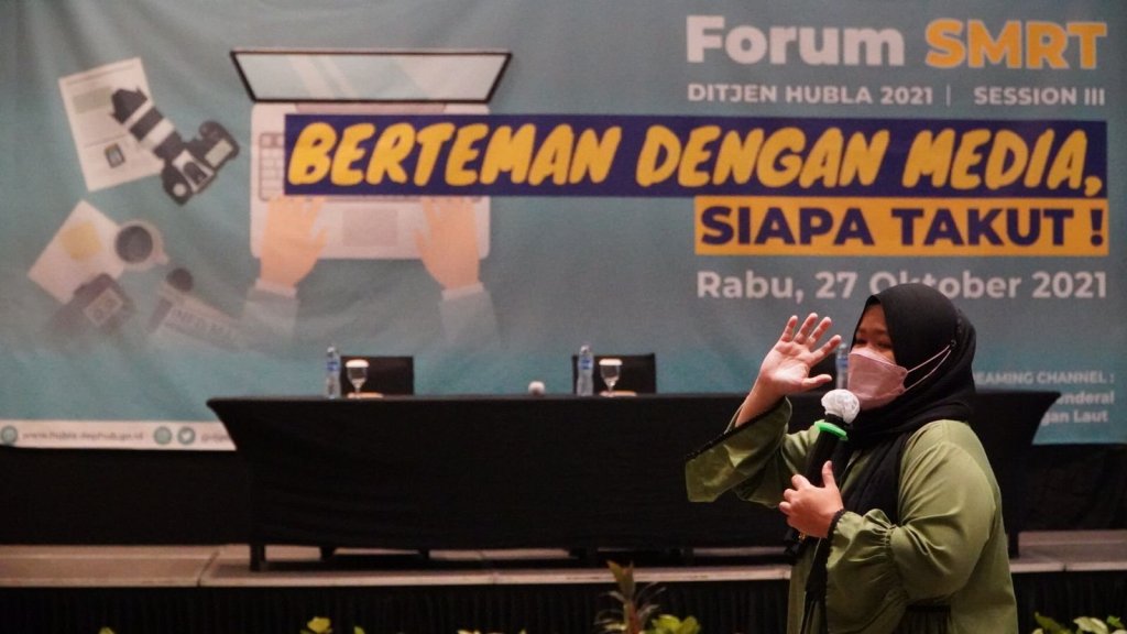 Kementerian Perhubungan cq Direktorat Jenderal Perhubungan Laut terus melakukan inovasi dan terobosan guna meningkatkan kompetensi anggota Sosial Media Response Team (SMRT) dalam melakukan penyampaian informasi. Kali ini, Ditjen Hubla kembali menggelar Forum SMRT Session 3 yang merupakan penutup rangkaian kegiatan di tahun ini dan diikuti oleh SMRT seluruh UPT Ditjen Hubla se Indonesia secara langsung maupun virtual pada Rabu,( 27/10/ 2021).