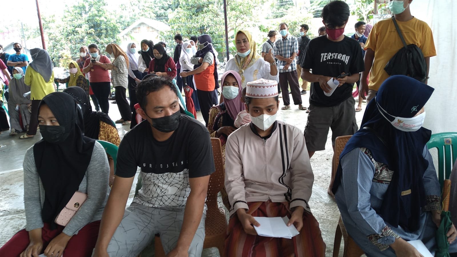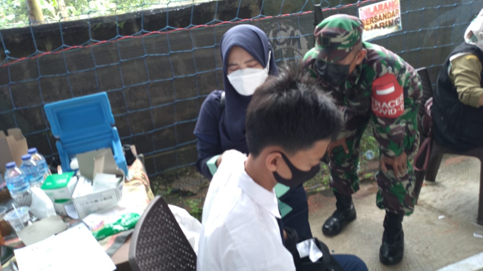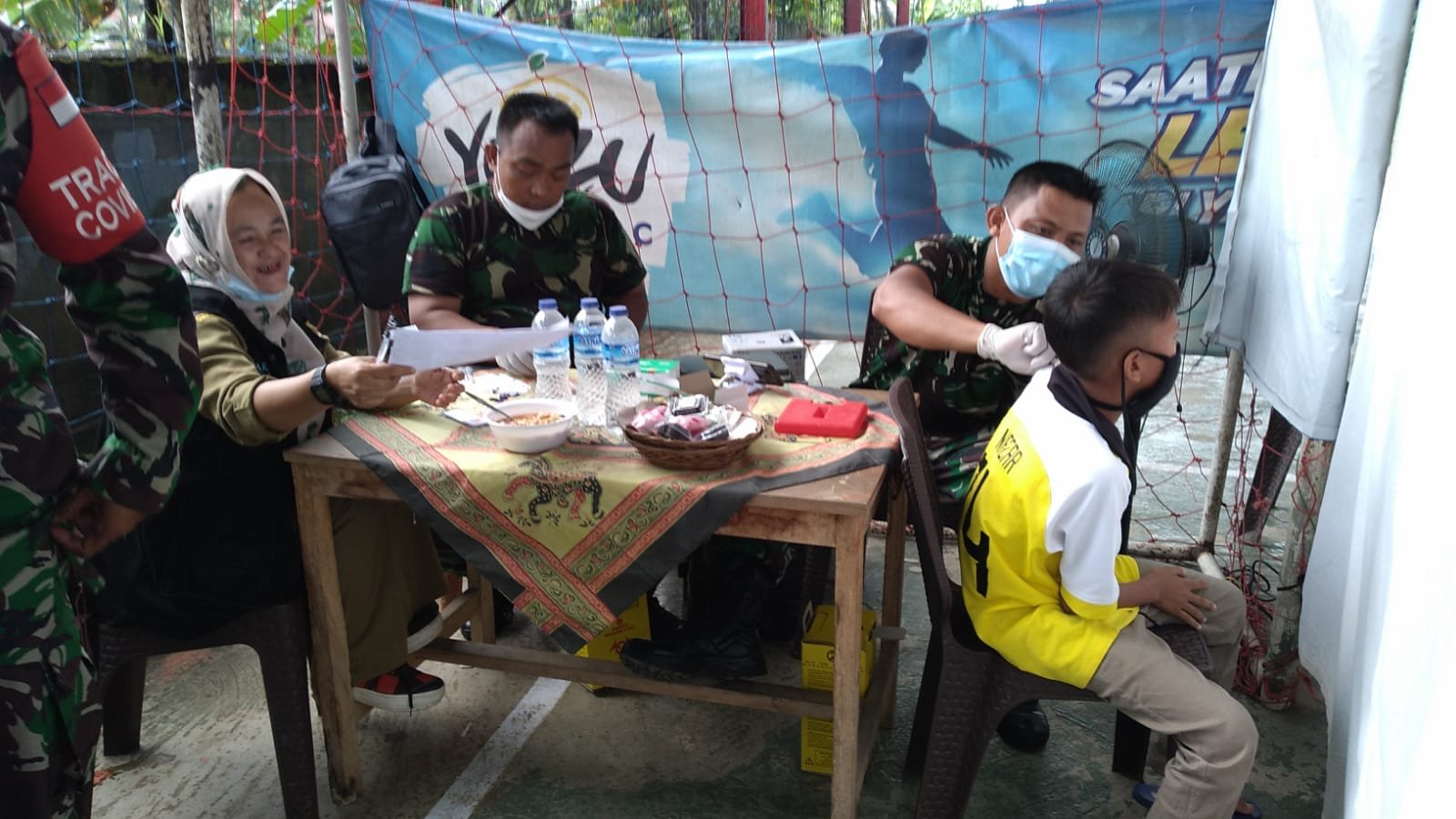 Warga desa setempat dengan antusiasme yang tinggi mendatangi kegiatan vaksinasi yang dipusatkan di SMP Taruna Bakti untuk mengikuti proses vaksinasi, dari mulai pendaftaran, proses penyuntikan vaksin hingga tahap observasi guna mendapatkan vaksin.