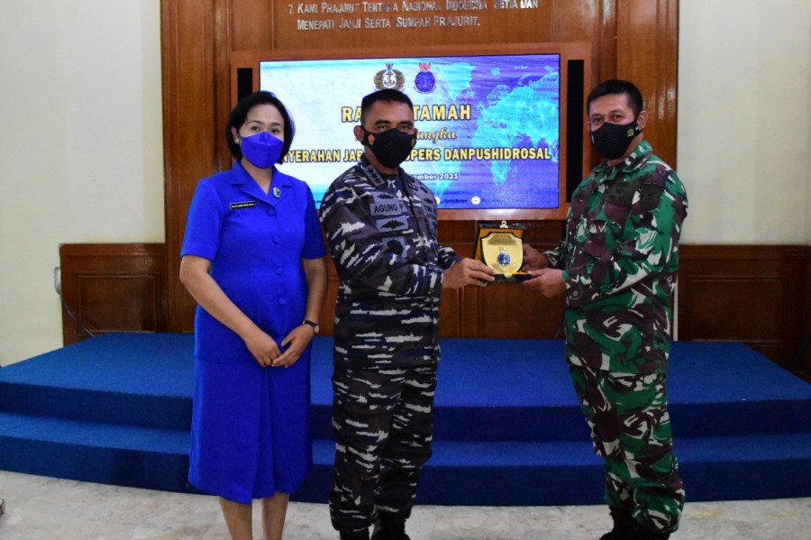 Komandan Pusat Hidro-Oseanografi TNI Angkatan Laut (Danpushidrosal) Laksamana Madya TNI Dr. Agung Prasetiawan , M.A.P. memimpin upacara Penyerahan jabatan Asisten Personel (Aspers) Danpushidrosal di Lounge Room Perwira Mako Pushidrosal, Jalan Pantai Kuta V/I, Ancol Timur – Jakarta Utara. Selasa (2/11/2021).