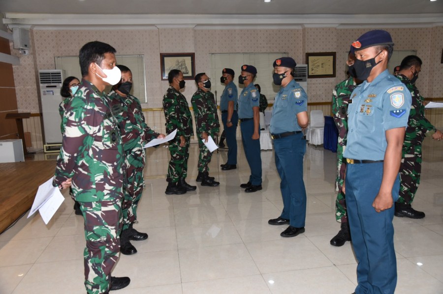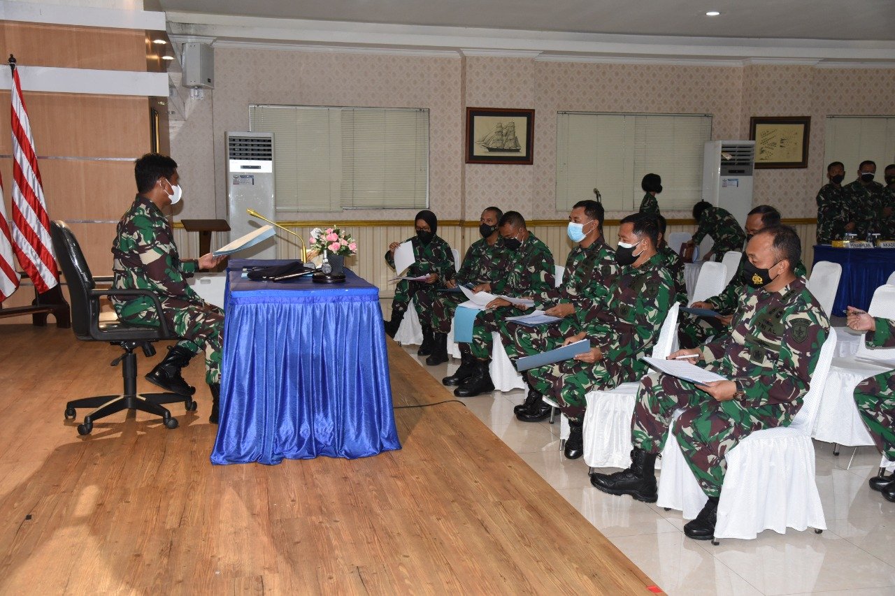 Satya Wira Jala Dharma. 3 Prajurit Tamtama akhirnya terpilih sebagai Tamtama teladan Komando Lintas Laut Militer (Kolinlamil) setelah melalui sidang pemilihan yang dipimpin Kepala Staf Kolinlamil Laksma TNI Retiono Kunto H bersama para Asisten yang berlangsung di Gedung Laut Natuna, Mako Kolinlamil, Tanjung Priok Jakarta Utara, Selasa (2/11/2021).