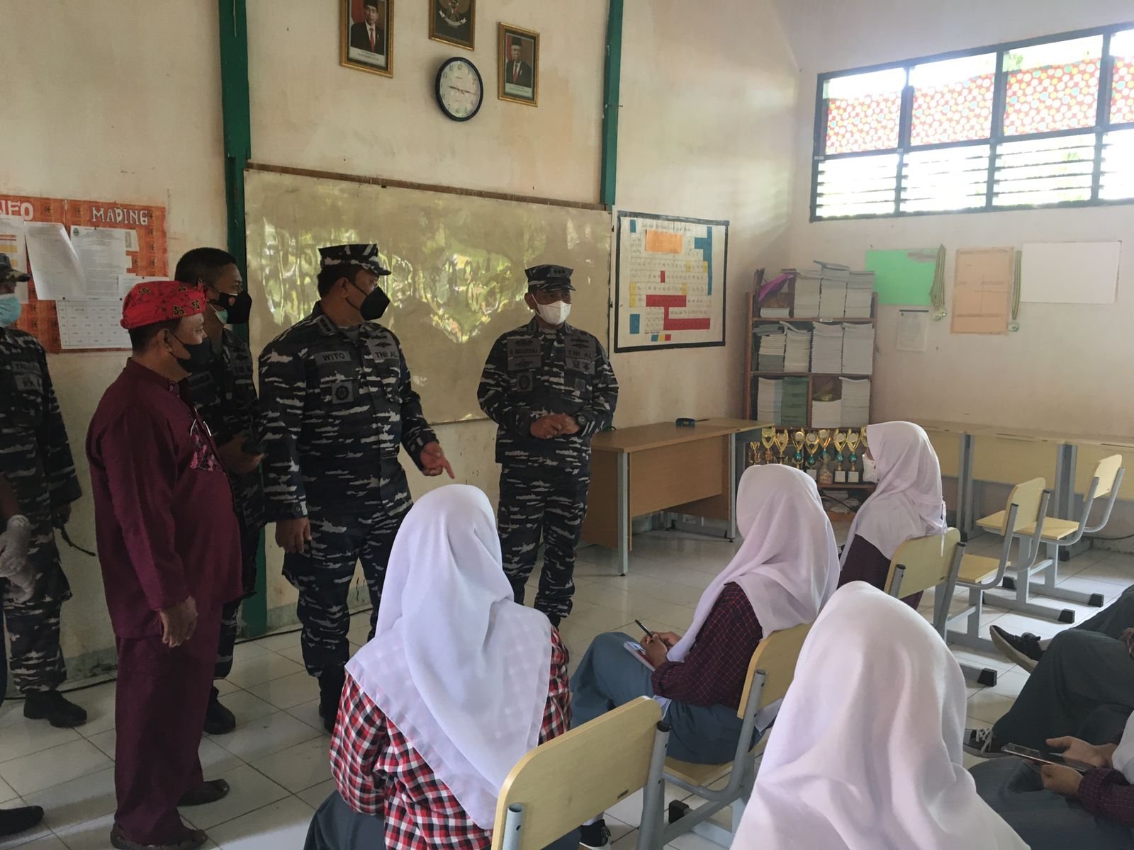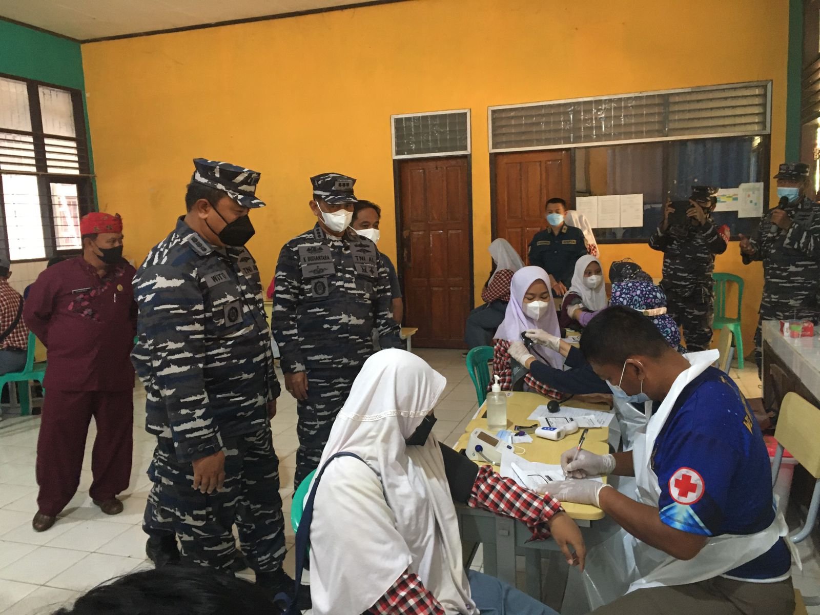 Satya Wira Jala Dharma. Setelah kemarin sore hingga malam, menyuntik dosis kedua warga di Balai desa Kotasari, Kecamatan Pusakanegara, Kamis pagi (4/11) Komando Lintas Laut Militer (Kolinlamil) TNI AL kembali kebut serbuan vaksinasi maritim Covid-19 terhadap 1500 pelajar di Sekolah Menengah Atas Negeri (SMAN) 1 Pusakanegara, Kecamatan Pamanukan, Kabupaten Subang.