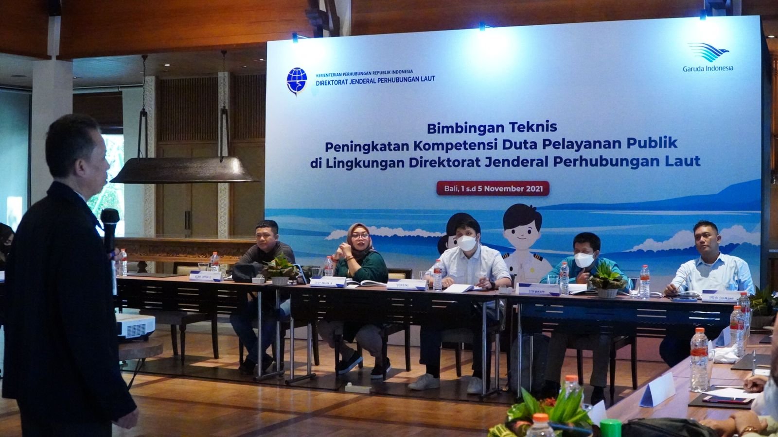 Kementerian Perhubungan Cq Direktorat Jenderal Perhubungan Laut terus berupaya meningkatkan pelayanan publik kepada masyarakat. Salah satunya dengan cara meningkatkan kompetensi para Duta Pelayanan Publik di Lingkungan Direktorat Jenderal Perhubungan Laut melalui Bimbingan Teknis (Bimtek) yang dilaksanakan di Bali, Jumat (5/11/2021).