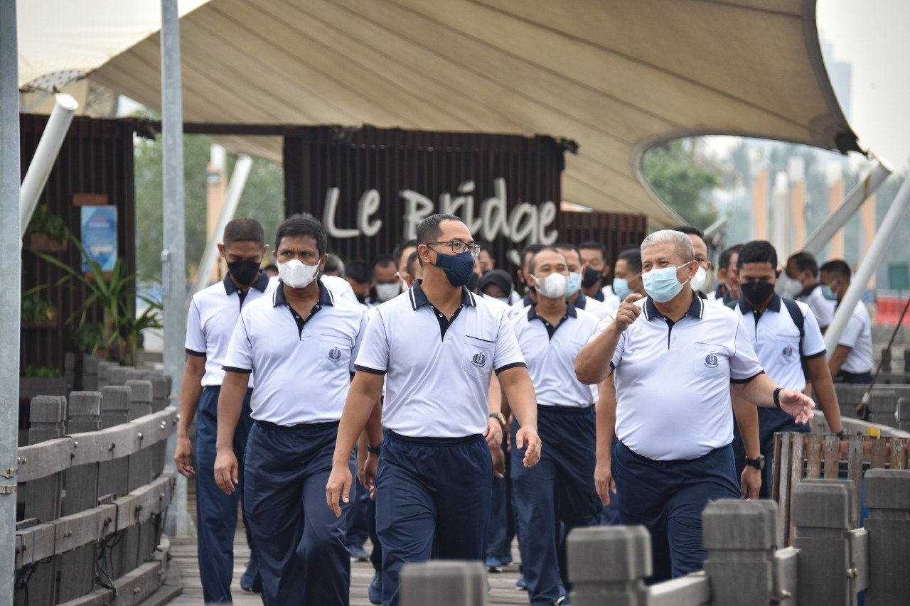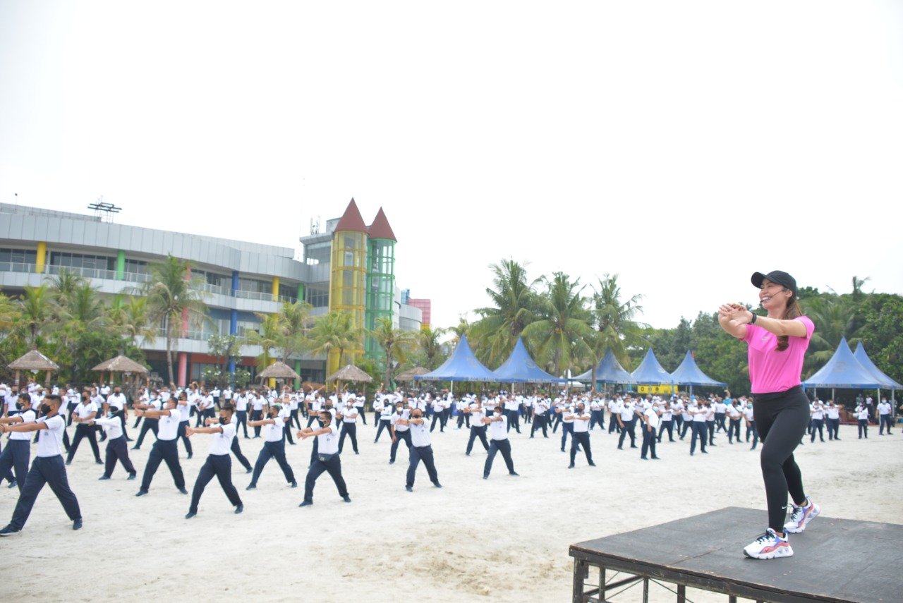 Olahraga bersama diawali dengan Apel pagi yang diipimpin Perwira Pelaksana (Palaksa) Denmako, dilanjutkan dengan senam yang dipimpin oleh tim senam aerobik. setelah senam usai, para peserta olahraga diajak untuk berkeliling Ancol dengan jalan sehat.