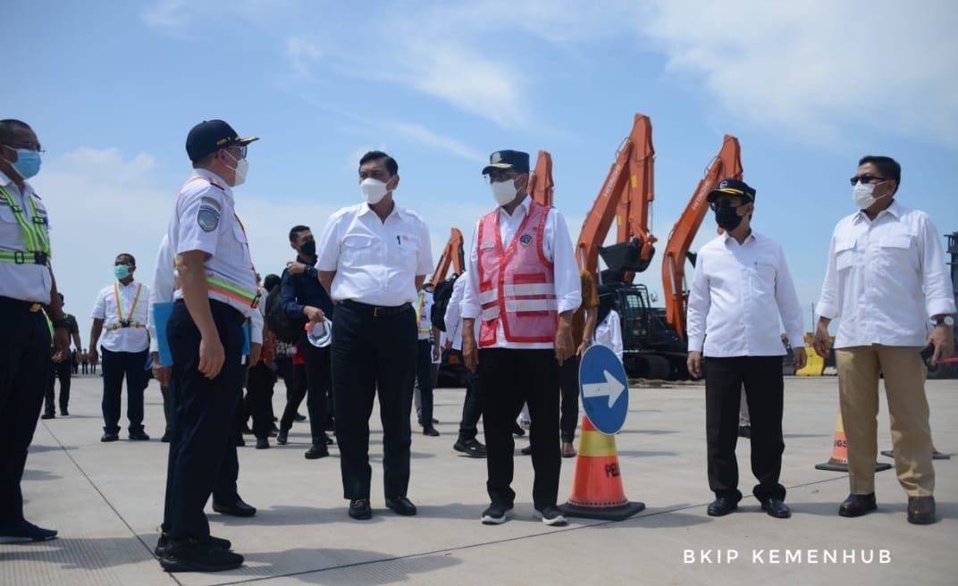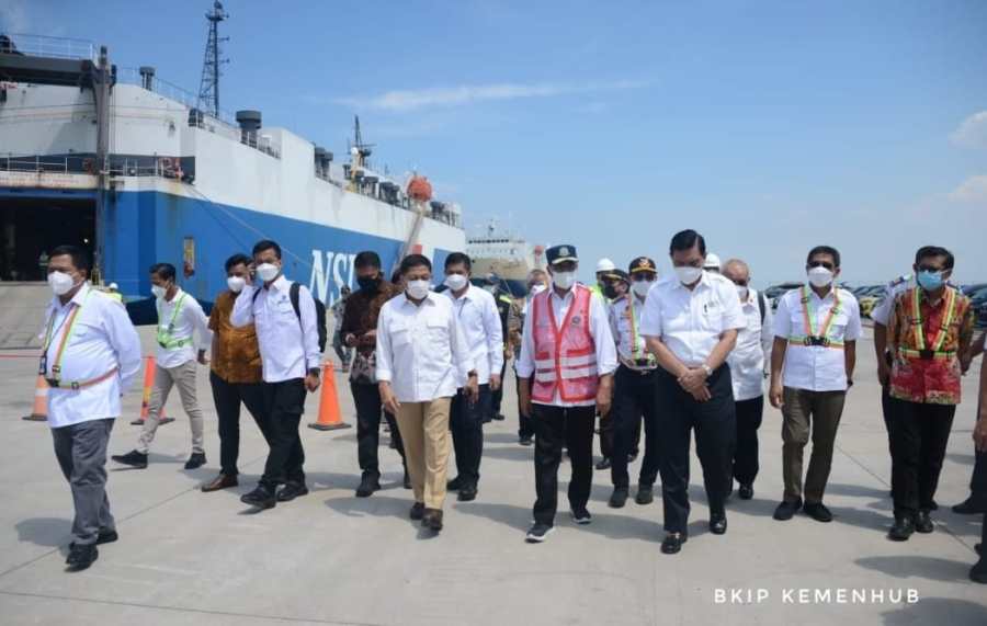 Menteri Perhubungan Budi Karya Sumadi, mendampingi Menteri Koordinator Maritim dan Investasi Luhut Binsar Pandjaitan meninjau Pelabuhan Patimban, Kabupaten Subang, Jawa Barat, hari ini Kamis (18/11/2021).