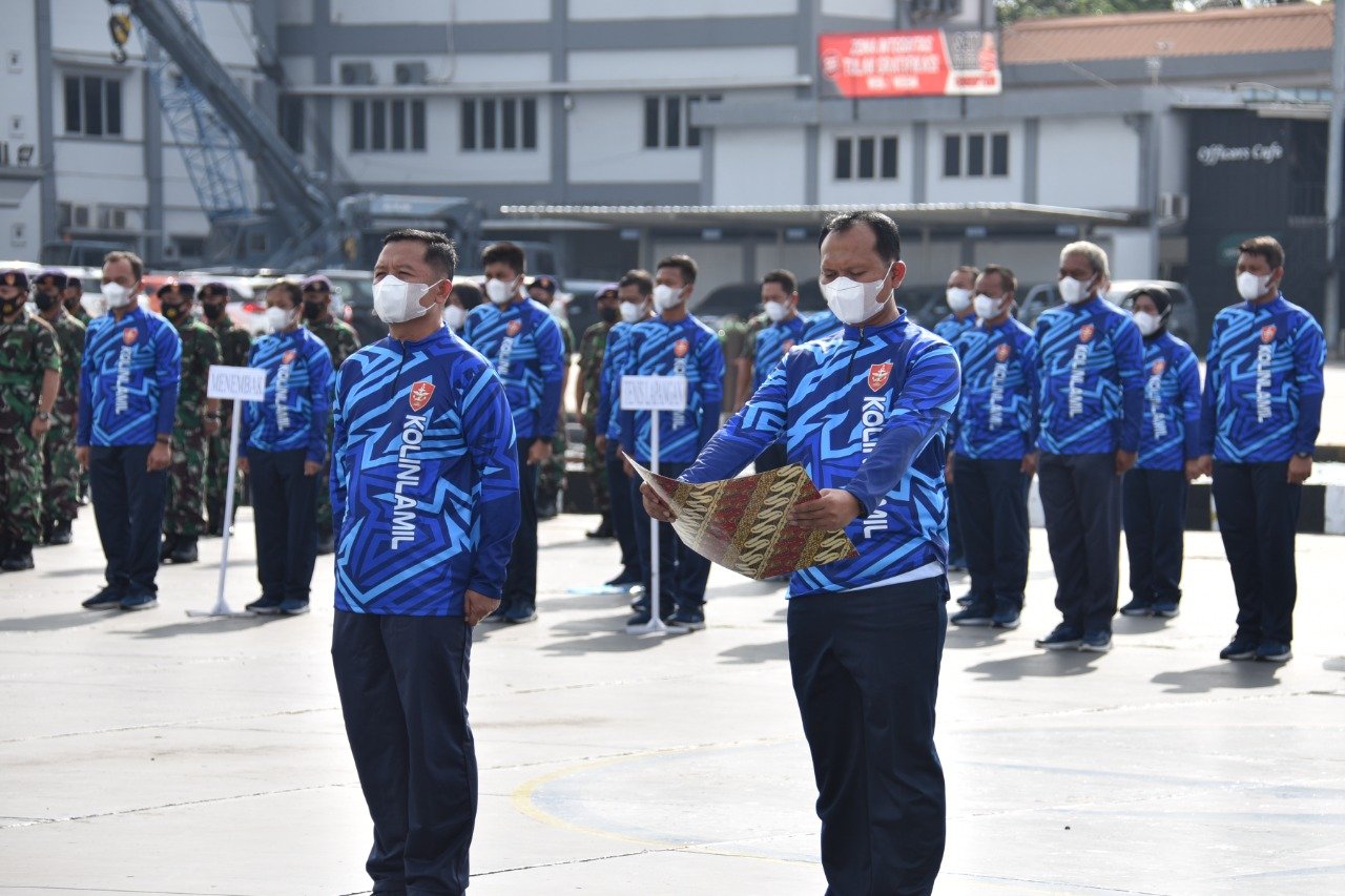 Satya Wira Jala Dharma. Panglima Komando Lintas Laut MiliterMiliter (Kolinlamil) Laksda TNI Erwin S Aldedharma secara resmi melepas Kontingen Kasal Cup Kolinlamil Tahun 2021 yang dilaksanakan di Lapangan Mulyono Silam, Mako Kolinlamil, Tanjung Priok, Jakarta Utara, Senin (22/11/2021).