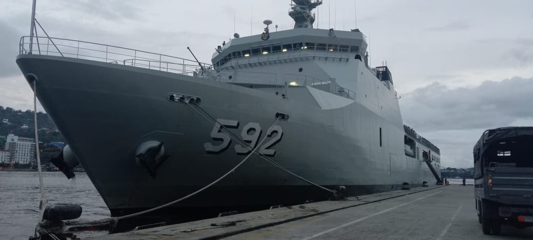 Kapal perang yang memiliki kapasitas 1500 personel itu, terang Letkol Laut (P) Bambang Purnomo mengangkut seluruh perlengkapan personel, persenjataan, hingga kendaraan taktis yang akan digunakan pada saat bertugas di perbatasan RI – PNG.