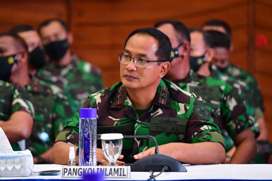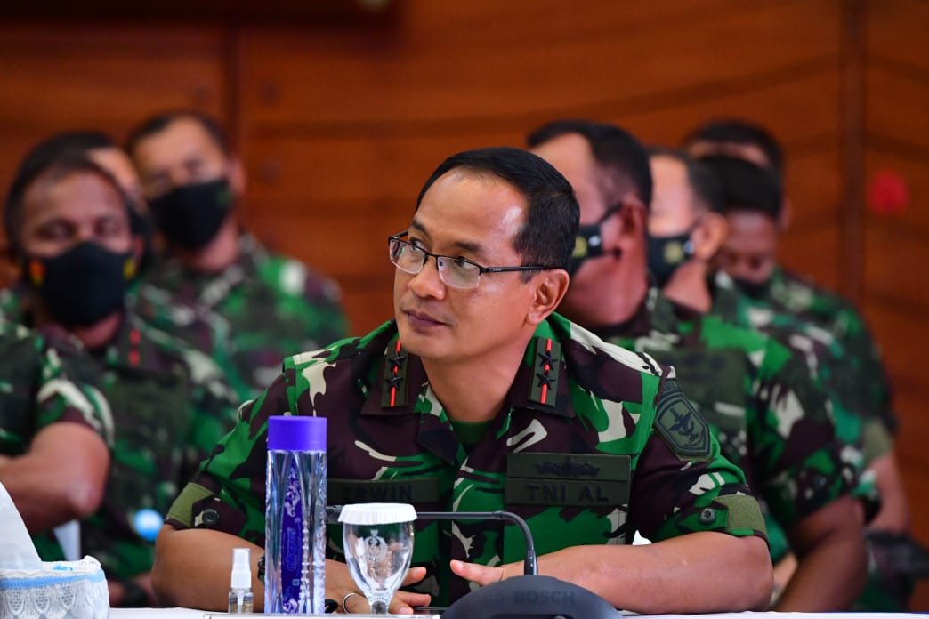 Satya Wira Jala Dharma. Panglima Komando Lintas Laut Militer (Kolinlamil) Laksda TNI Erwin S Aldedharma menghadiri pengarahan Panglima TNI Jenderal TNI Andika Perkasa yang menyambangi Markas Besar Angkatan laut (Mabesal), Senin (22/11/2021).