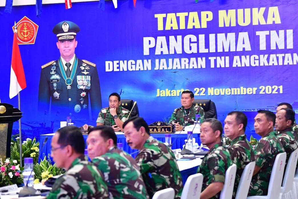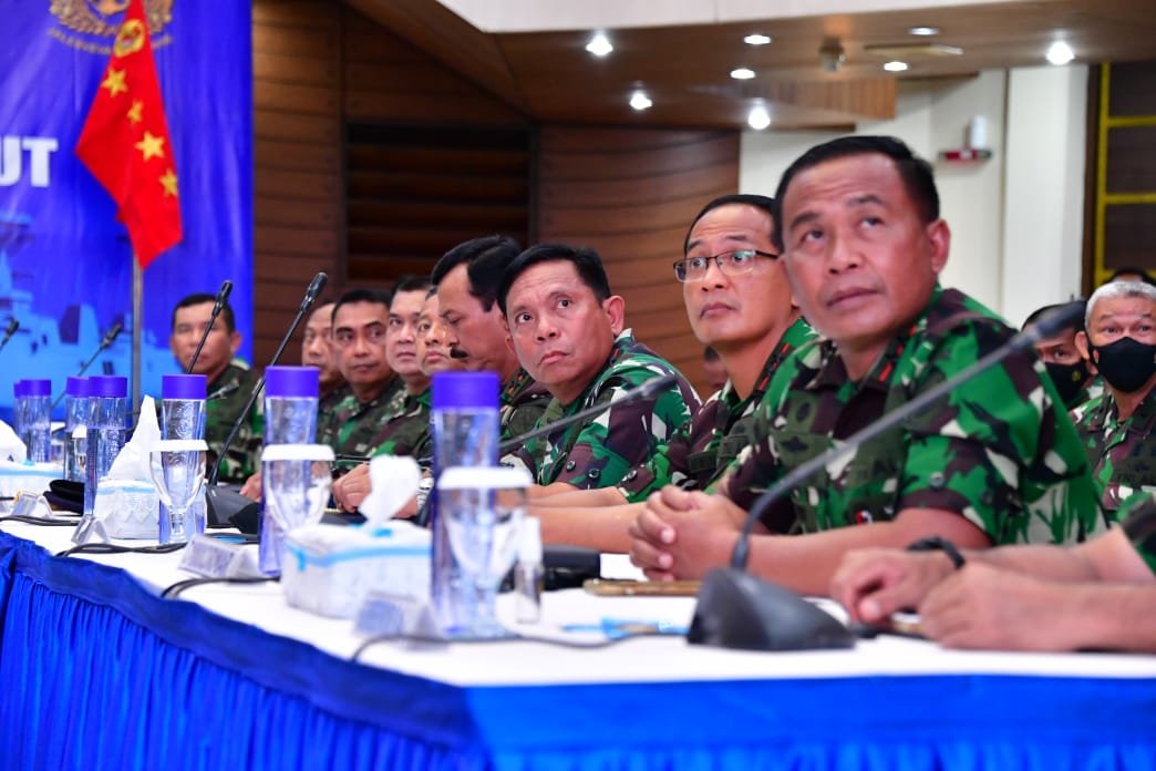 Selesai memberikan pengarah kepada seluruh jajaran TNI AL baik secara tatap langsung di Mabesal dan melalui video conference (vicon) Panglima TNI melanjutkan kunjungannya menuju Mabesau. (MM-01)
