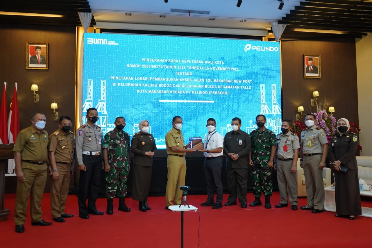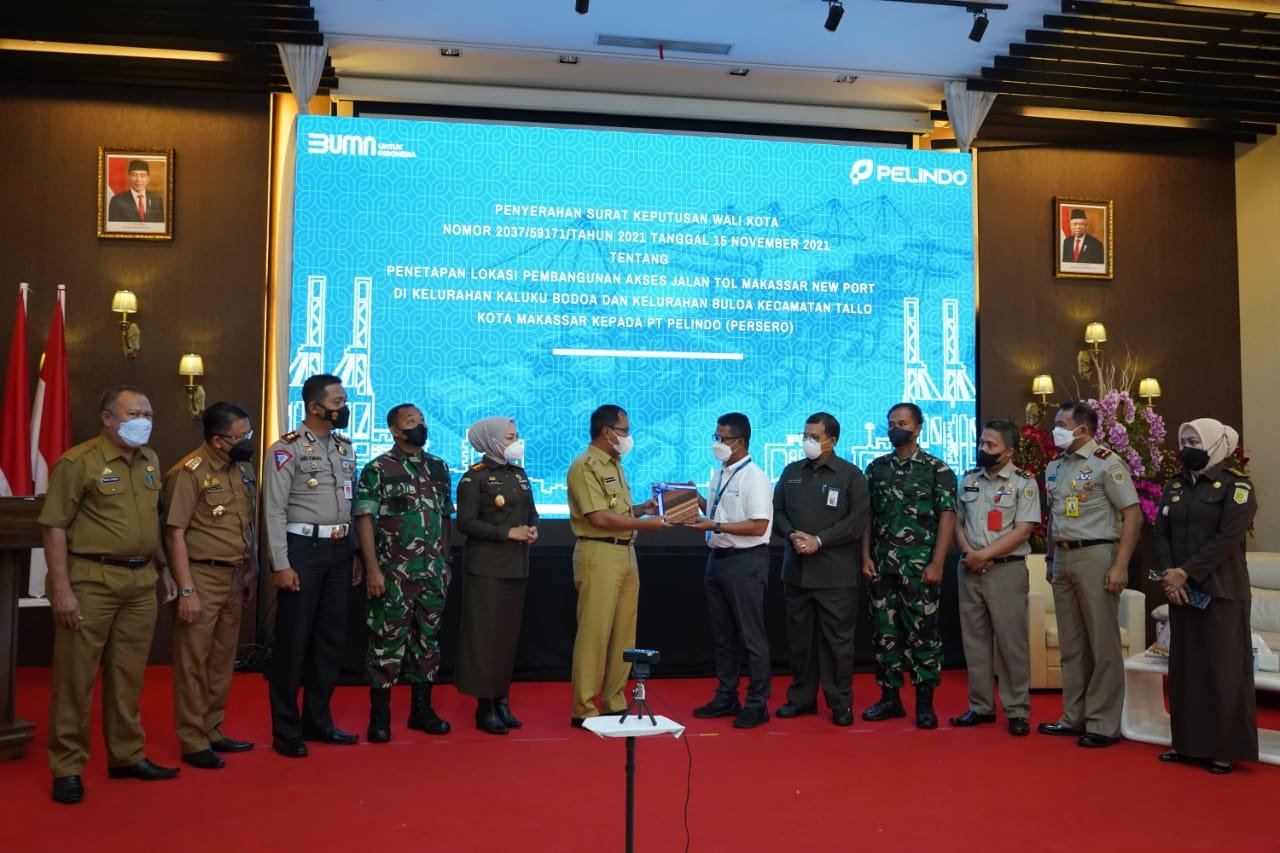 PT Pelabuhan Indonesia (Persero) Regional 4 resmi menerima Surat Keputusan (SK) Wali Kota Nomor 2037/59171/Tahun 2021 Tanggal 15 November 2021 tentang Penetapan Lokasi Pembangunan Akses Jalan Tol Makassar New Port (MNP).
