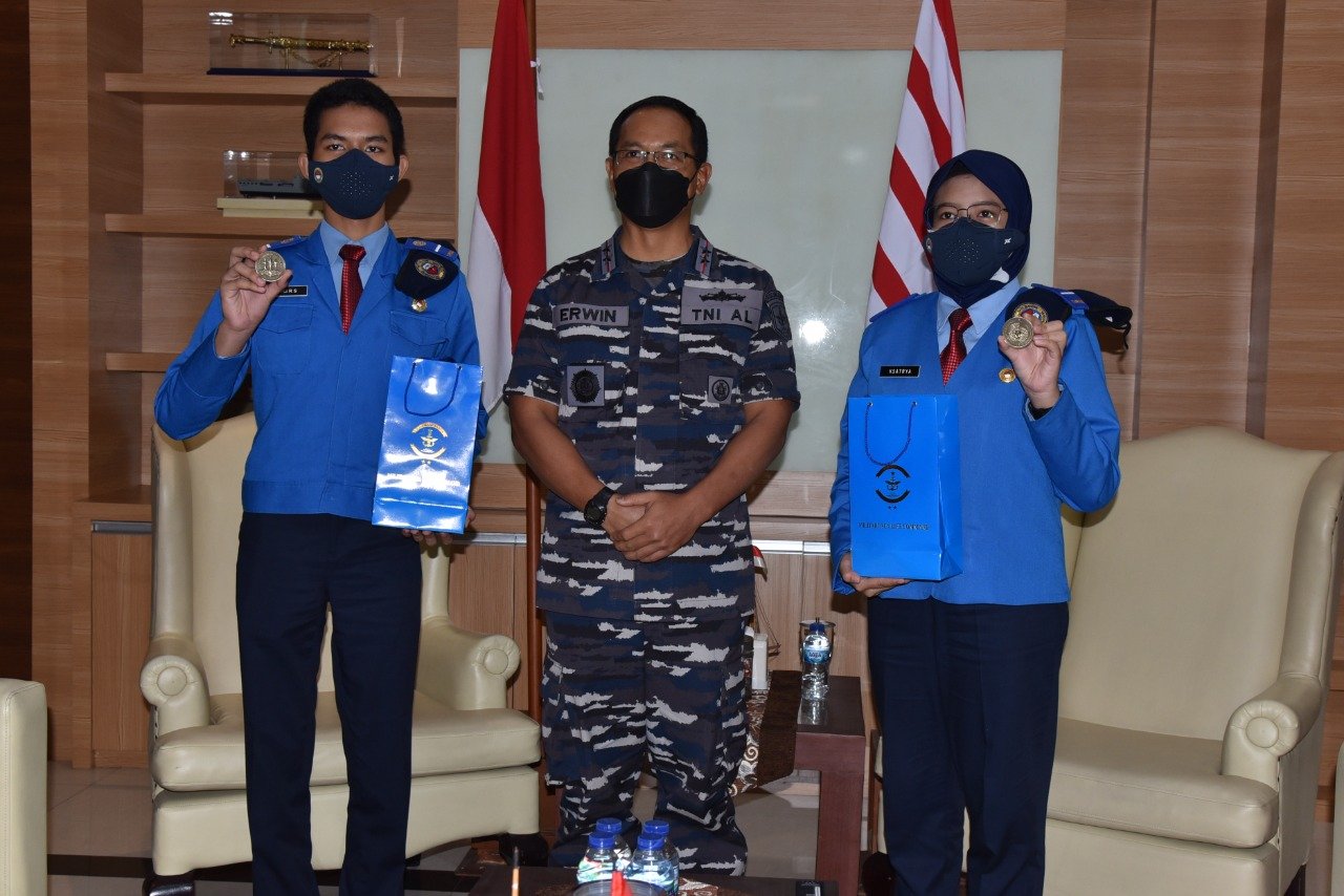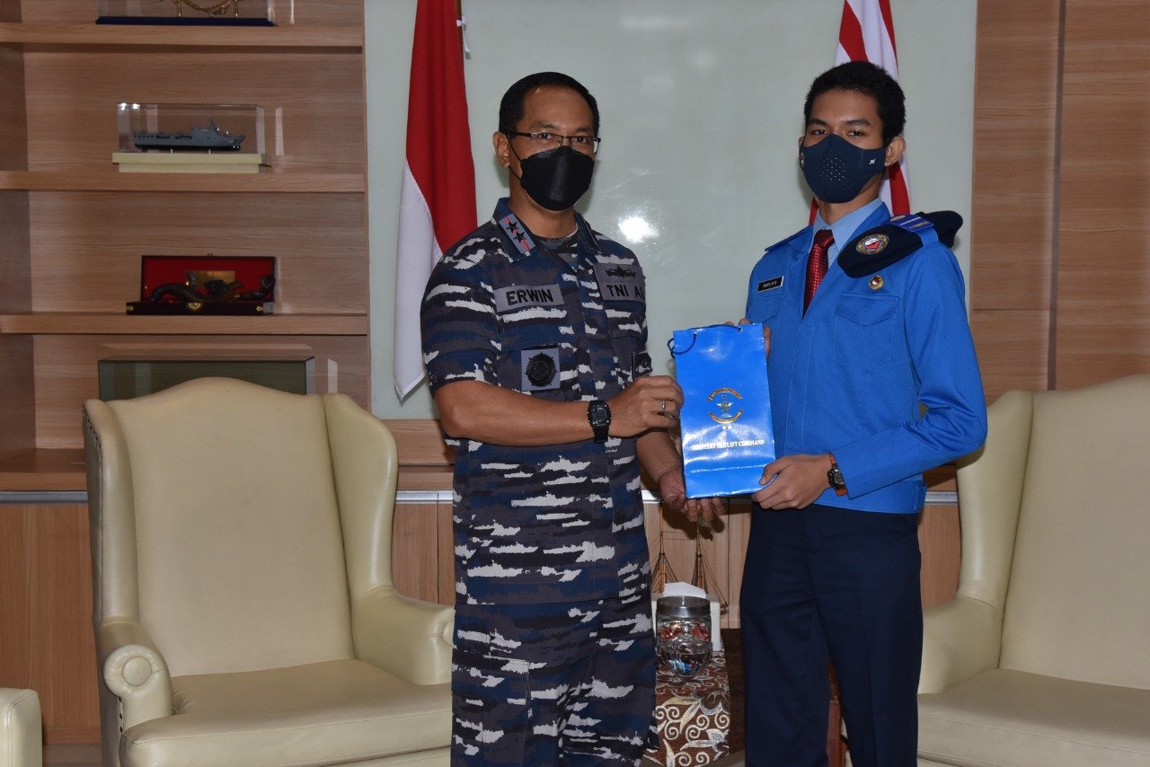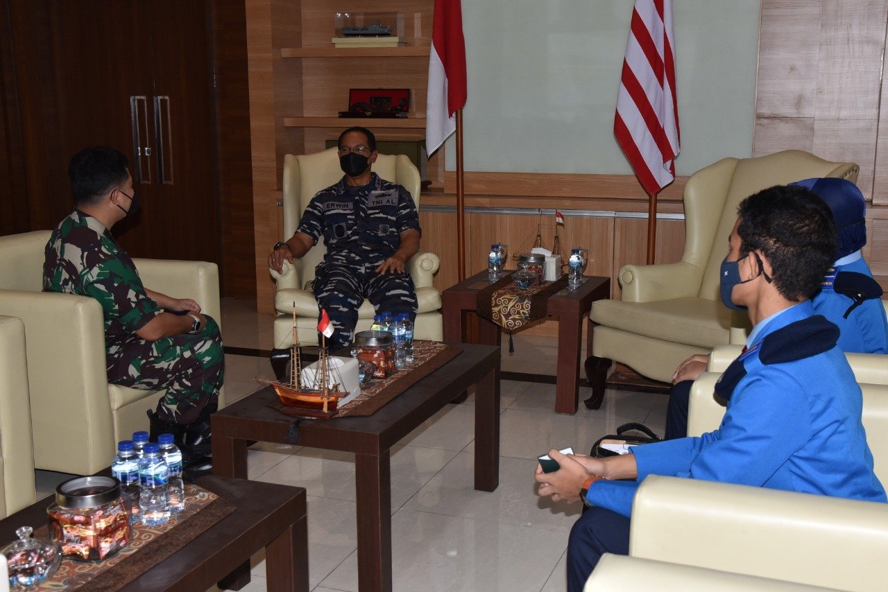 Satya Wira Jala Dharma. Panglima Komando Lintas Laut Militer (Kolinlamil) Laksda TNI Erwin S Aldedharma menerima audiensi siswa SMA Taruna Nusantara (SMA TN) di Mako Kolinlamil, Tanjung Priok, Jakarta Utara, Kamis (25/11/2021).