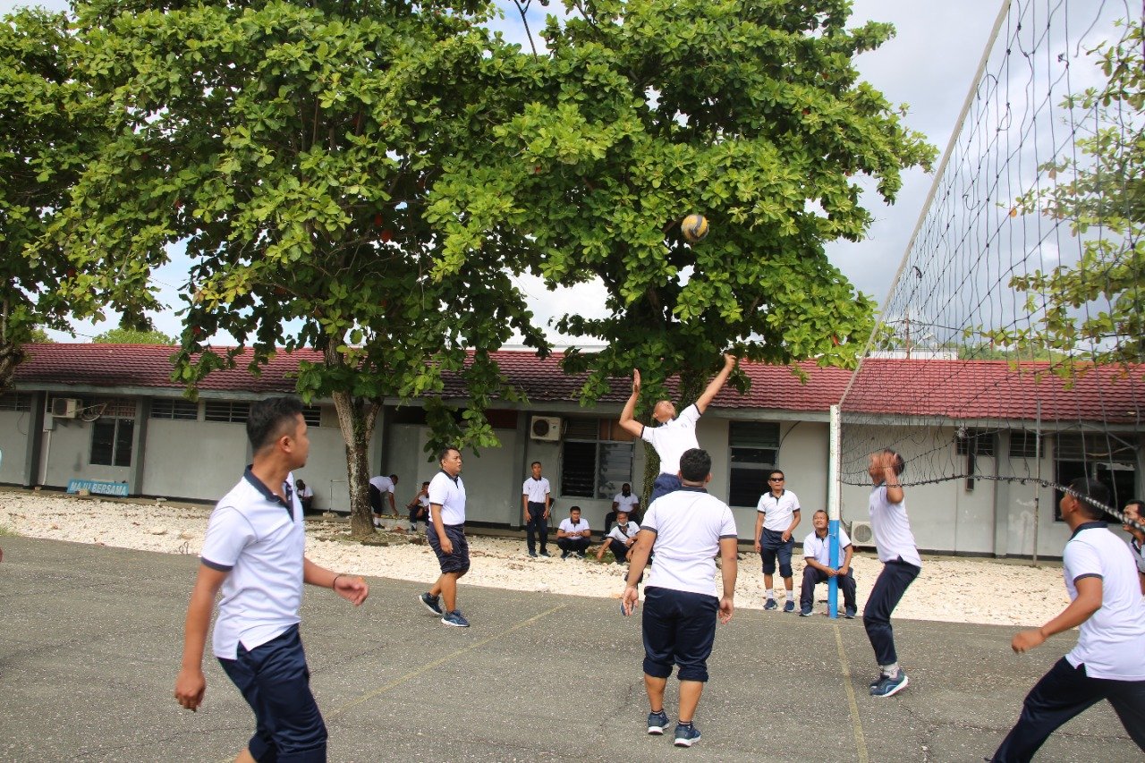 Saat sandar untuk melaksanakan bekal ulang bahan bakar dan air tawar, para prajurit menggunakan waktu luang yang ada dengan olahraga bersama dengan lari keliling kompleks Lantamal X Jayapura.
