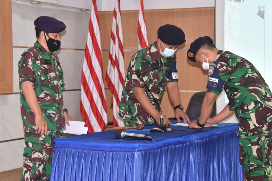 Satya Wira Jala Dharma. Dalam lanjutan latihan fungsi hukum Dinas Hukum Komando Lintas Laut Militer, Selasa (30/11/2021) memasuki materi tentang Sidang Disiplin Militer yang berlangsung di Gedung Laut Natuna, Mako Kolinlamil, Tanjung Priok, Jakarta Utara.