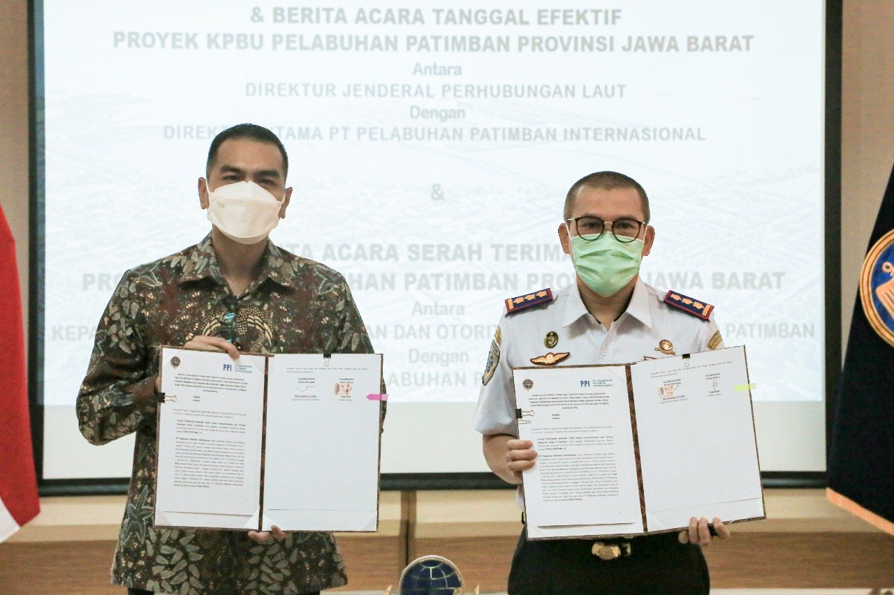 Penandatanganan tersebut dilaksanakan oleh Pelaksana Tugas Direktur Jenderal Perhubungan Laut Arif Toha dengan Direktur Utama PT Pelabuhan Patimban Internasional, yang dilanjutkan dengan Berita Acara Serah Terima Aset KPBU Pelabuhan Patimban antara Kepala Kantor Kesyahbandaran dan Otoritas Pelabuhan Kelas II Patimban dengan Direktur Utama PT Pelabuhan Patimban Internasional, serta dilakukan penandatanganan Berita Acara Tanggal Efektif KPBU antara Direktur Jenderal Perhubungan Laut dengan Direktur Utama PT Pelabuhan Patimban.