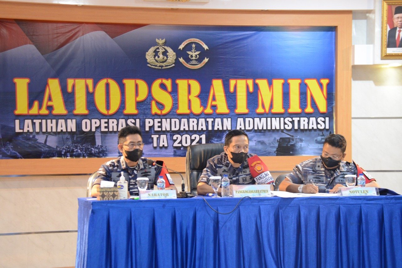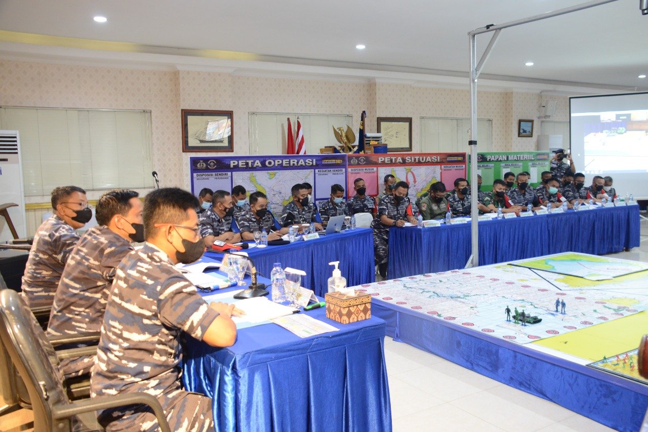 Geladi Pos Komando Latihan Operasi Pendaratan Administrasi 2021 menggelar Tactical Floor Game (TFG) di masing-masing Komando Tugas. Panglima Komando Lintas Laut Militer (Kolinlamil) Laksda TNI Erwin S Aldedharma memimpin langsung uji rencana operasi Komando Tugas Gabungan Pendaratan Administrasi (Kogasgabratmin) di Mako Kolinlamil, Tanjung Priok – Jakarta Utara, Jumat (17/12/2021).