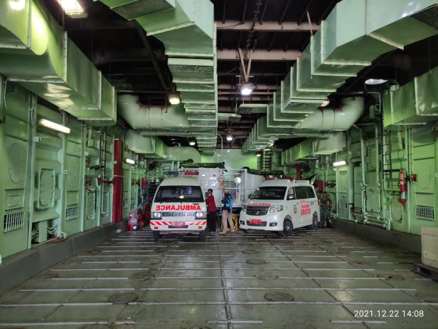 Kapal perang yang memiliki oksigen generator ini mendukung pengisian oksigen untuk Puskesmas Rawat Inap Padang Cermin dengan berbagai ukuran tabung. Demikian juga dengan Peleton Kesehatan Batalion 7 Marinir Lampung dan Puskesmas Hanura.