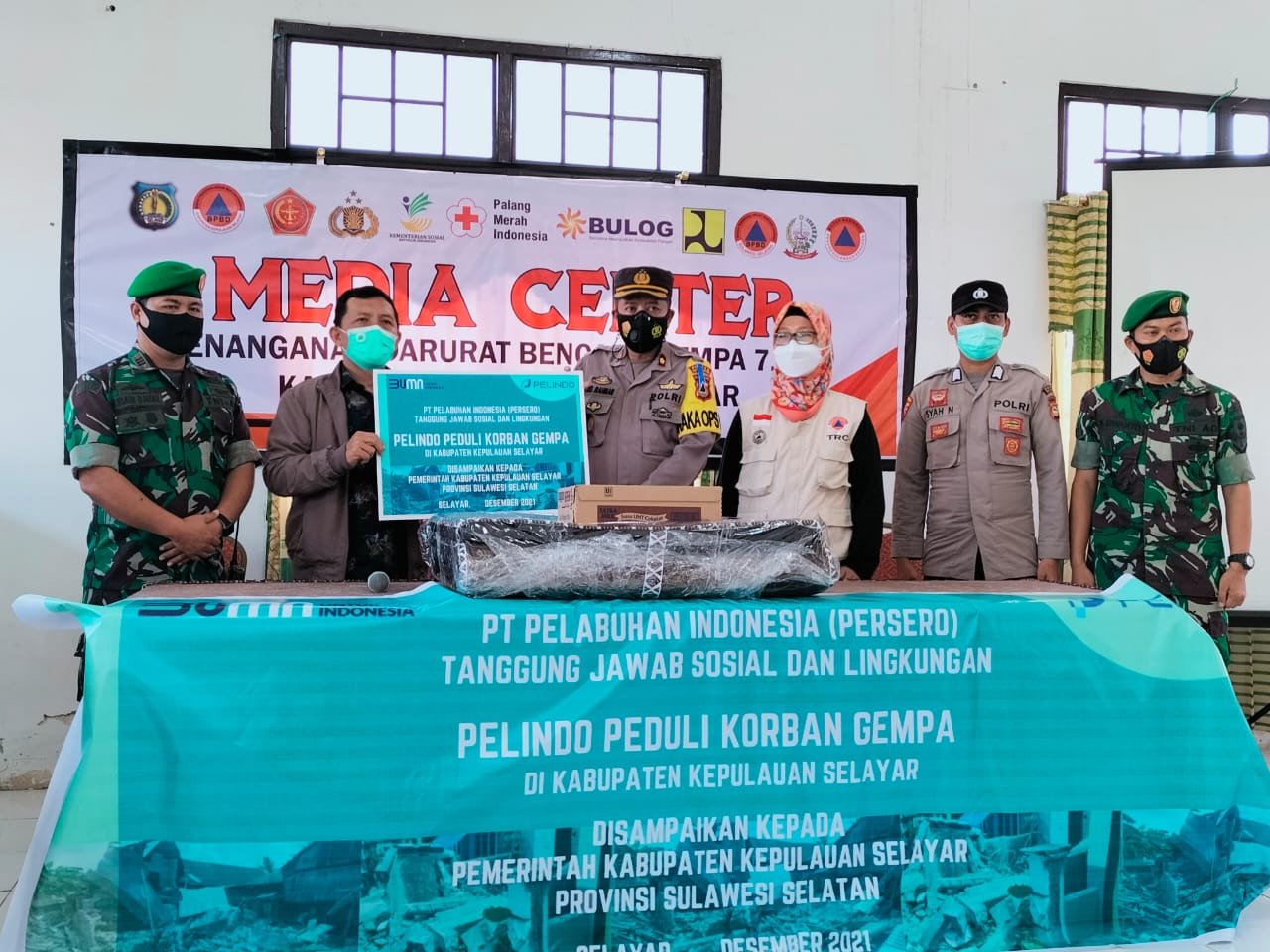 Bantuan ini diberikan oleh Pelindo melalui Regional 4 dan diserahkan langsung Department Head Tanggung Jawab Sosial dan Lingkungan Subholding Pelindo Jasa Maritim Supriyadi Ratman, kepada Sekretaris Badan Penanggulangan Bencana Daerah (BPBD) Kabupaten Kepulauan Selayar Rosa Indah Hasan di Media Center Penanganan Darurat Bencana Gempa Kabupaten Kepulauan Selayar, Jumat (24/12/2021) kemarin.