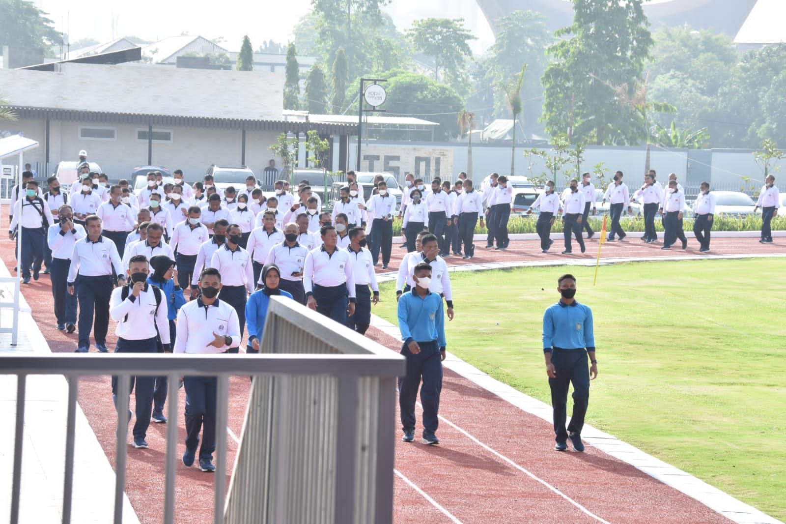 Panglima Komando Lintas Laut Militer (Kolinlamil) Laksda TNI Erwin S Aldedharma menghadiri peresmian Gedung Mako Guskamla II, Lapangan Tenis Krida Viyata serta Lintasan Lari Komando Latihan (Kolat) Koarmada I oleh Kasal Laksamana TNI Yudo Margono di Lapangan Olahraga Kolat Koarmada I, Kodamar, Sunter, Jakarta Utara, Selasa (28/12/2021). Panglima Kolinlamil hadir bersama dengan Panglima Kotama lainnya yang berada di wilayah Jakarta.