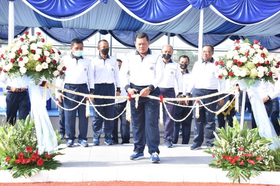 Panglima Komando Lintas Laut Militer (Kolinlamil) Laksda TNI Erwin S Aldedharma menghadiri peresmian Gedung Mako Guskamla II, Lapangan Tenis Krida Viyata serta Lintasan Lari Komando Latihan (Kolat) Koarmada I oleh Kasal Laksamana TNI Yudo Margono di Lapangan Olahraga Kolat Koarmada I, Kodamar, Sunter, Jakarta Utara, Selasa (28/12/2021). Panglima Kolinlamil hadir bersama dengan Panglima Kotama lainnya yang berada di wilayah Jakarta.