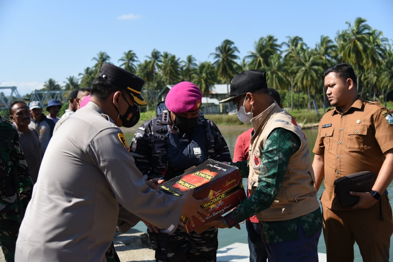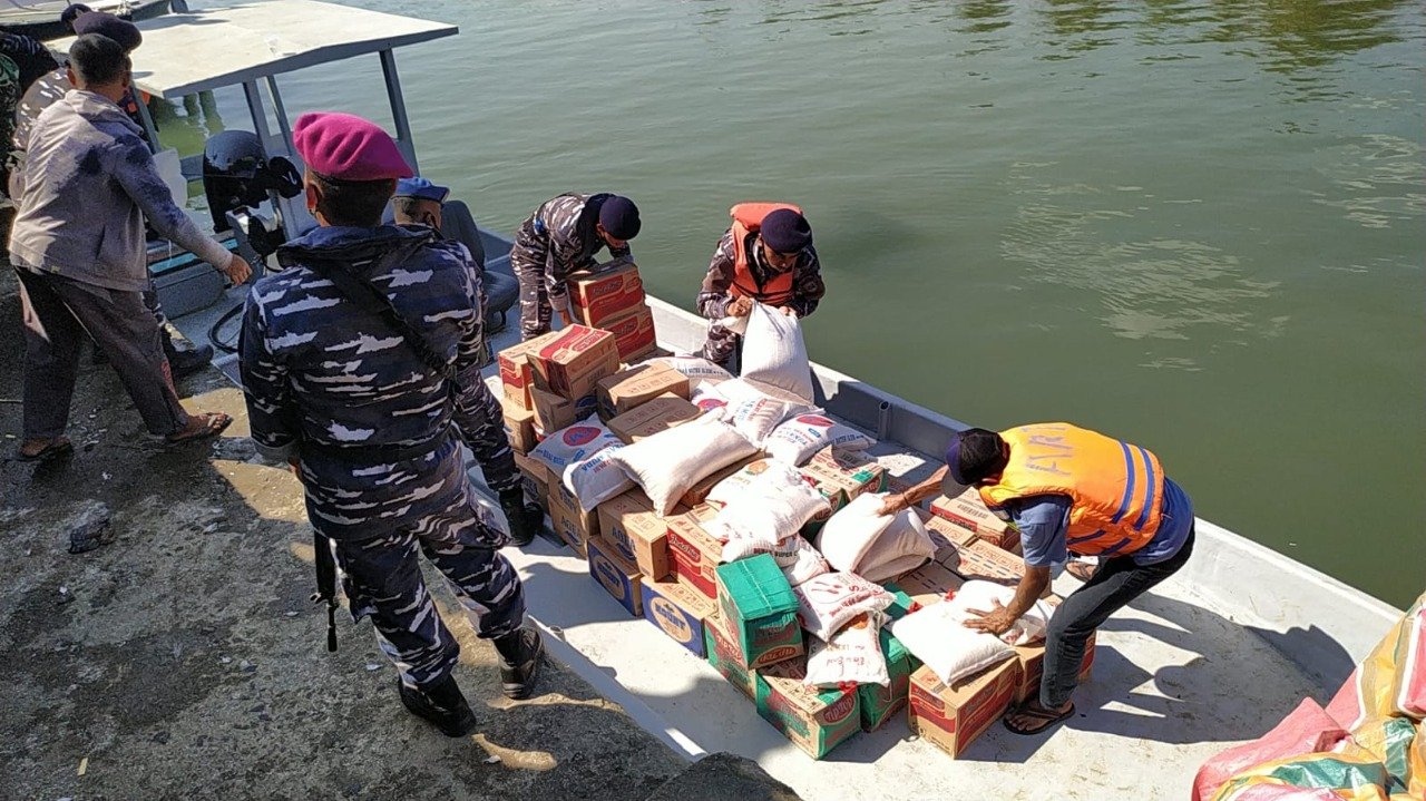 Danlanal Lhokseumawe dalam peninjauannya ke lokasi menyampaikan bahwa, selain tugas utamanya mengamankan wilayah perbatasan perairan NKRI, TNI AL juga memberikan dan menyalurkan bantuan dari TNI AL termasuk dari Pemerintah Kabupaten setempat.
