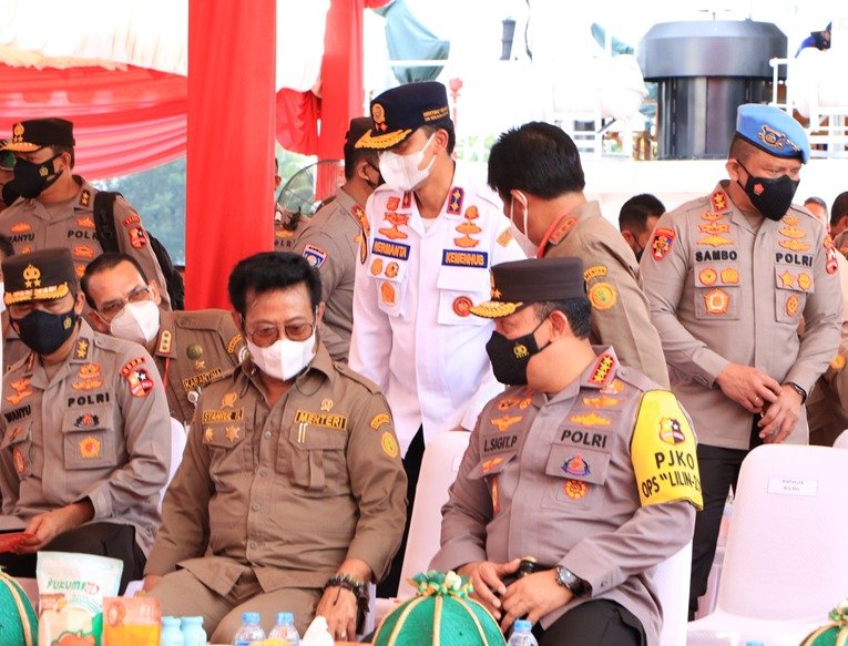 Kegiatan Gebyar Ekspor Komoditi ini dihadiri dan dibuka langsung oleh Menteri Pertanian Syahrul Yasin Limpo dan Kapolri Jenderal Polisi Listyo Sigit Prabowo dan Gubernur Sulawesi Selatan beserta Pejabat Utama dan Unsur Forkopimda Provinsi Sulawesi Selatan – Makassar, hari ini Jumat (31/12/2021.