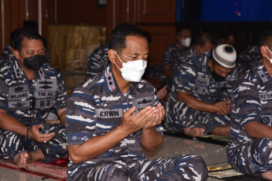 Laksda TNI Erwin S Aldedharma mengajak seluruh prajurit dan PNS untuk bermunajat dan bersyukur kepada Allah SWT Tuhan Yang Maha Esa karena masih diberikan kesehatan dan kesempatan bisa menjalankan tugas negara di tengah mewabahnya pandemi Covid-19.