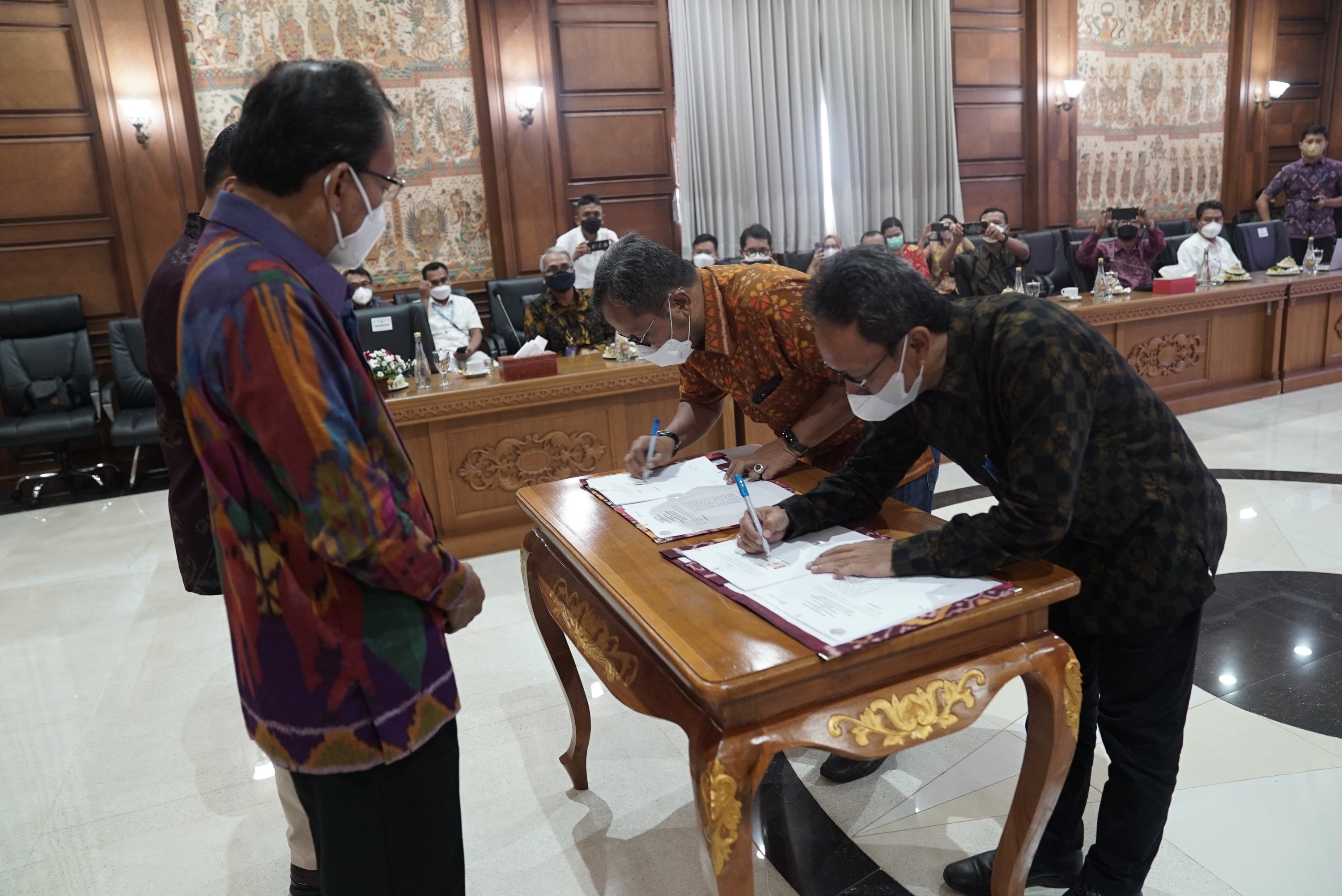 Komitmen tersebut tertuang dalam Perjanjian Kerjasama Antara Pemerintah Provinsi Bali dengan Pelindo yang ditanda tangani bersama antara Kepala Dinas Pekerjaan Umum Pemprov Bali Nusakti Yasa Wedha dan Direktur Investasi Pelindo Boy Robyanto dan disaksikan langsung oleh Komisaris Utama Pelindo Laksamanan TNI (Purn.) Prof. Dr. Marsetio, S.I.P., M.M. dan Gubernur Bali Wayan Koster di Rumah Dinas Gubernur Bali Jaya Sabha, Rabu (29/12/2021).