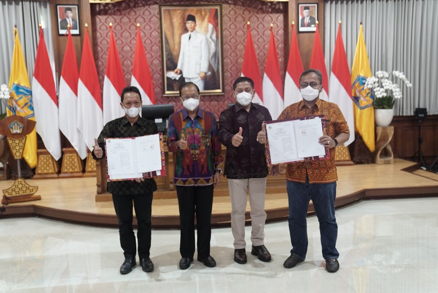 Komitmen tersebut tertuang dalam Perjanjian Kerjasama Antara Pemerintah Provinsi Bali dengan Pelindo yang ditanda tangani bersama antara Kepala Dinas Pekerjaan Umum Pemprov Bali Nusakti Yasa Wedha dan Direktur Investasi Pelindo Boy Robyanto dan disaksikan langsung oleh Komisaris Utama Pelindo Laksamanan TNI (Purn.) Prof. Dr. Marsetio, S.I.P., M.M. dan Gubernur Bali Wayan Koster di Rumah Dinas Gubernur Bali Jaya Sabha, Rabu (29/12/2021).