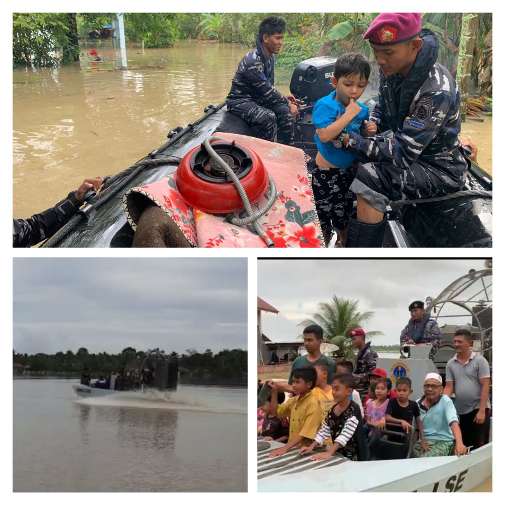 Jalesveva Jayamahe, TNI AL mengadakan trauma healing khususnya untuk anak-anak korban banjir di Kecamatan Lhoksukon, Aceh Utara dengan menggunakan Swamboat Wind Proppellant, Senin (3/1/2022).kemarin.