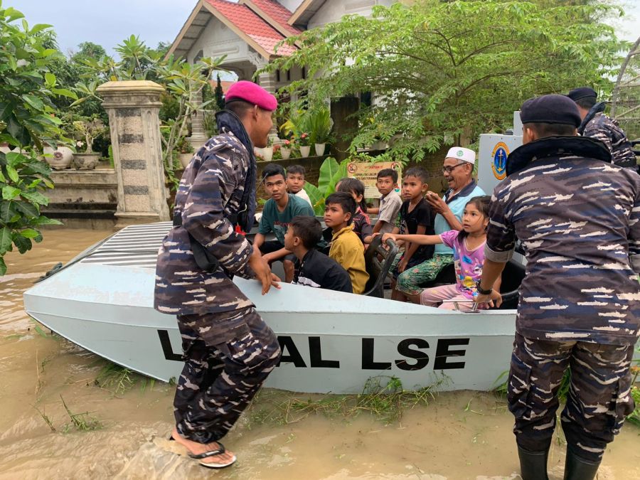 Atas seizin Komandan Lantamal I Belawan Laksamana Pertama TNI Ahmad Wibisono, Danlanal Lhokseumawe segera mengirimkan Satgas Penanggulangan Banjir TNI AL yang berjumlah 22 personel dipimpin Mayor Marinir Darmo Sugiyono sebagai Dansatgas untuk membantu masyarakat di Desa Gampong Beringin LB, Desa Gampong Nga dan Desa Gampong Asan LB di Kec. Lhoksukon.