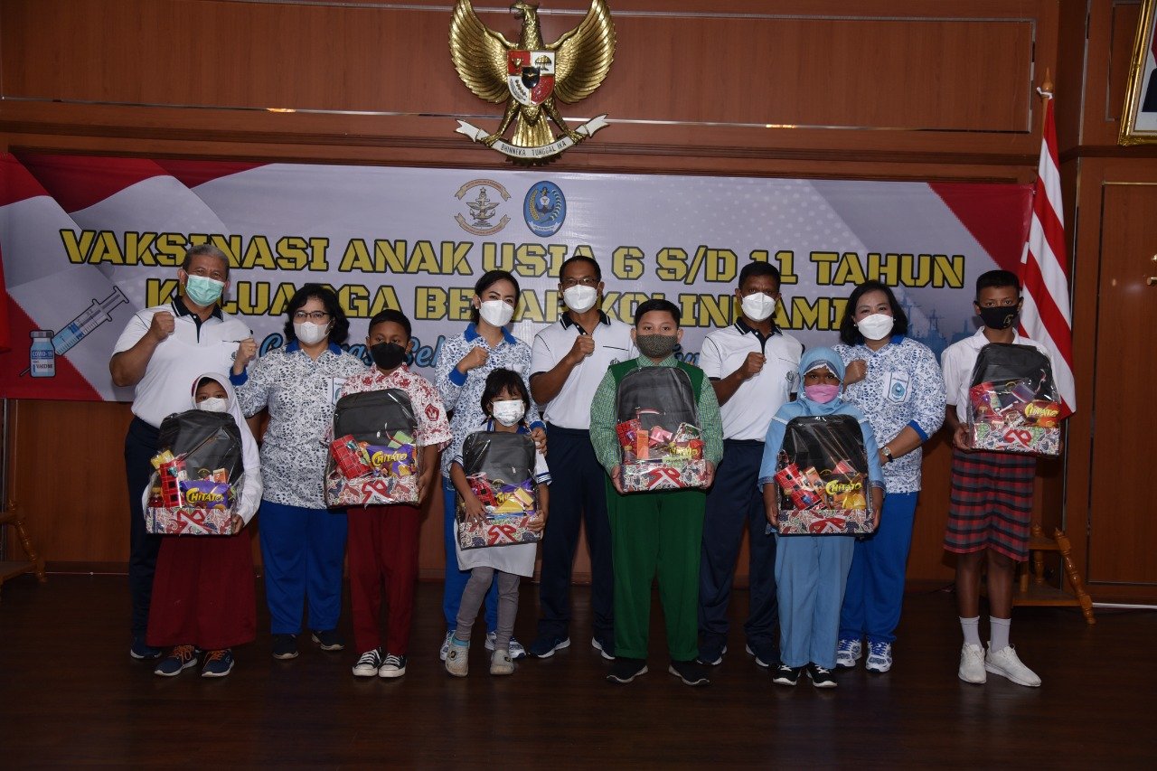Kolinlamil juga memberikan bingkisan kepada anak-anak yang telah mengikuti kegiatan vaksinasi. Hal ini dimaksudkan sebagai salah satu wujud kepedulian sosial Kolinlamil TNI AL dalam pencegahan Covid-19 bagi masyarakat setempat dan Keluarga Besar Kolinlamil. (MM-01)