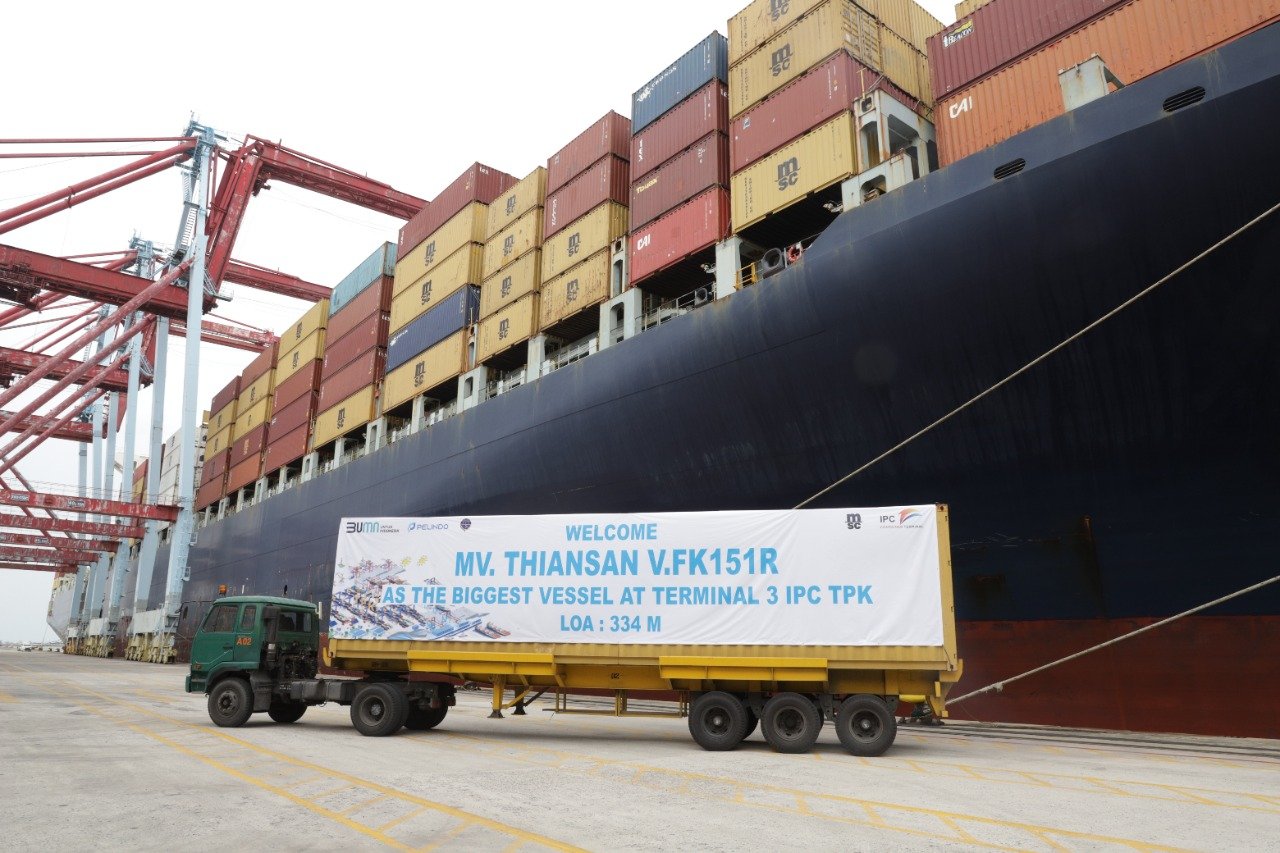 Kepala Kantor Otoritas Pelabuhan Utama Tanjung Priok, Dr. Capt. Wisnu Handoko MSc dan Kepala Kantor Syahbandar Utama Pelabuhan Tanjung Priok Andi Hartono beserta tim menghadiri penyambutan kapal terbesar, dengan ukuran LOA 334 M di dermaga IPC TPK Tanjung Priok ( TO3).