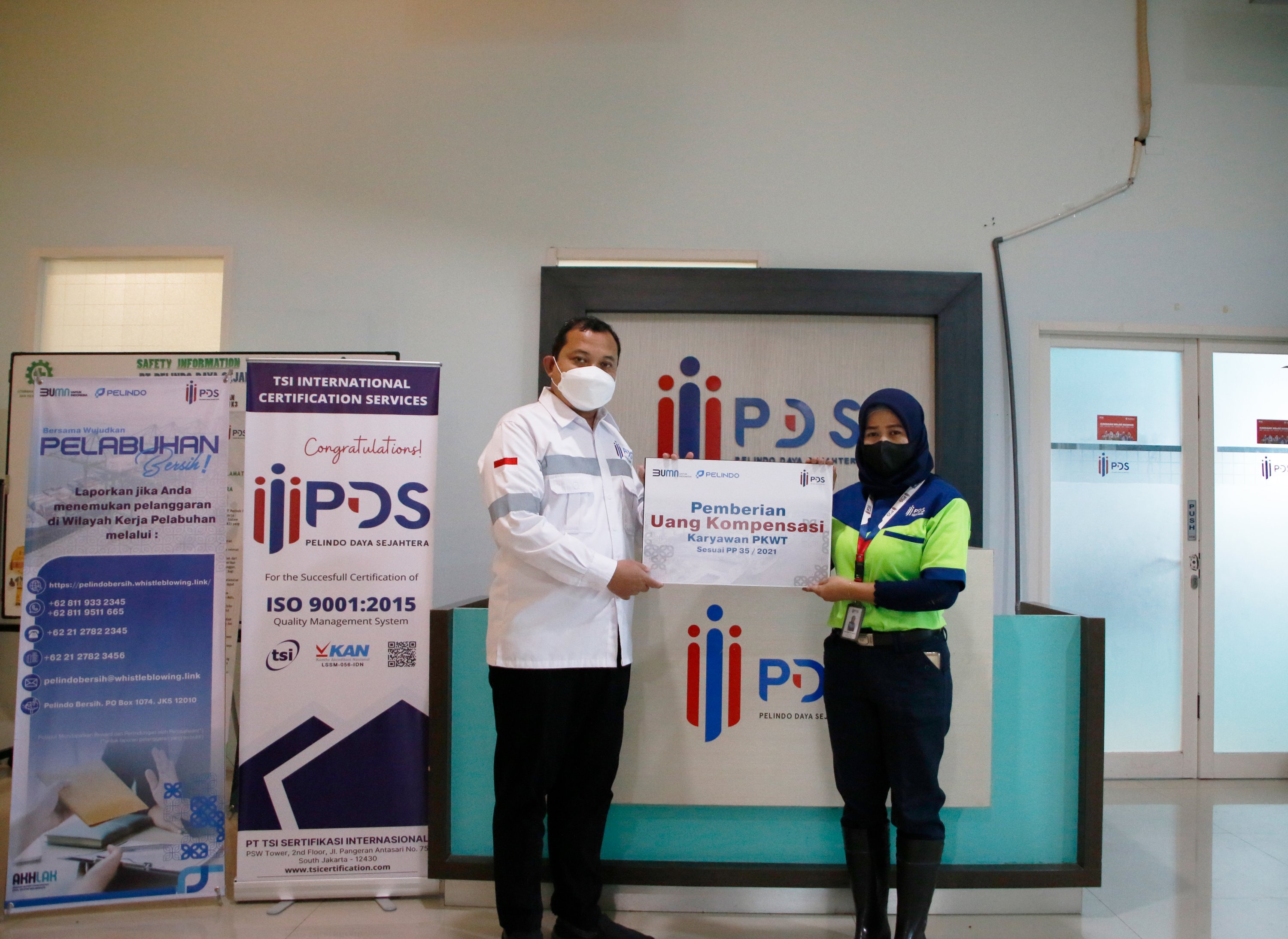 PT Pelindo Daya Sejahtera (PDS) menyalurkan pembayaran uang kompensasi tahap I sebesar Rp.9,4,- miliar kepada karyawannya yang berstatus Perjanjian Kerja Waktu Tertentu (PKWT) yang kontrak PKWT berakhir di tanggal 31 Desember 2021. Hal ini menjadi wujud dari komitmen Pelindo Daya Sejahtera dalam mematuhi peraturan ketenagakerjaan terbaru. Simbolis penyaluran kompensasi ketenagakerjaan ini dilaksanakan di kantor Pelindo Daya Sejahtera kepada perwakilan karyawan di Surabaya, Jumat (14/1/2022).