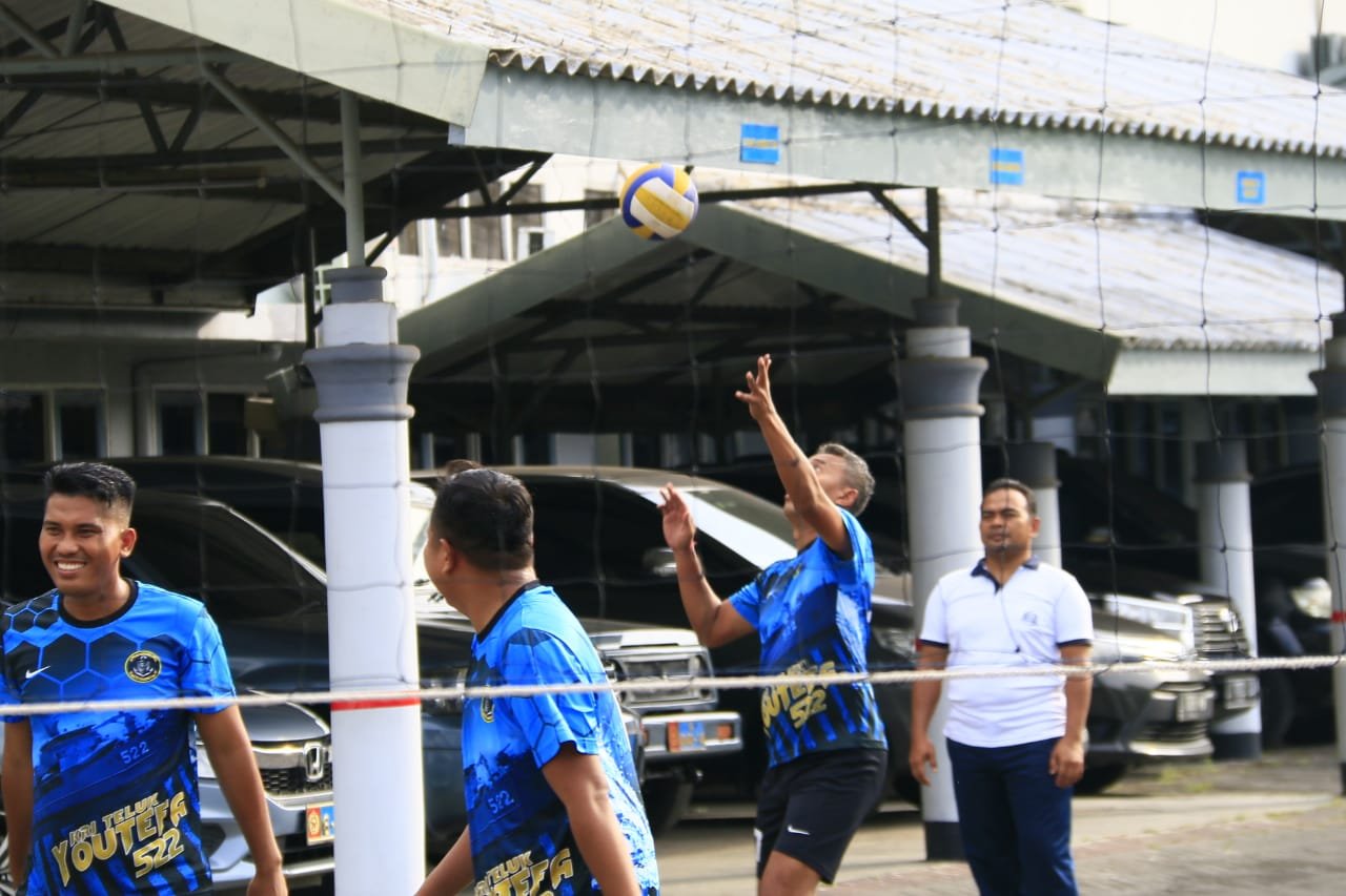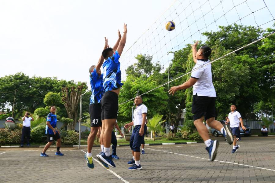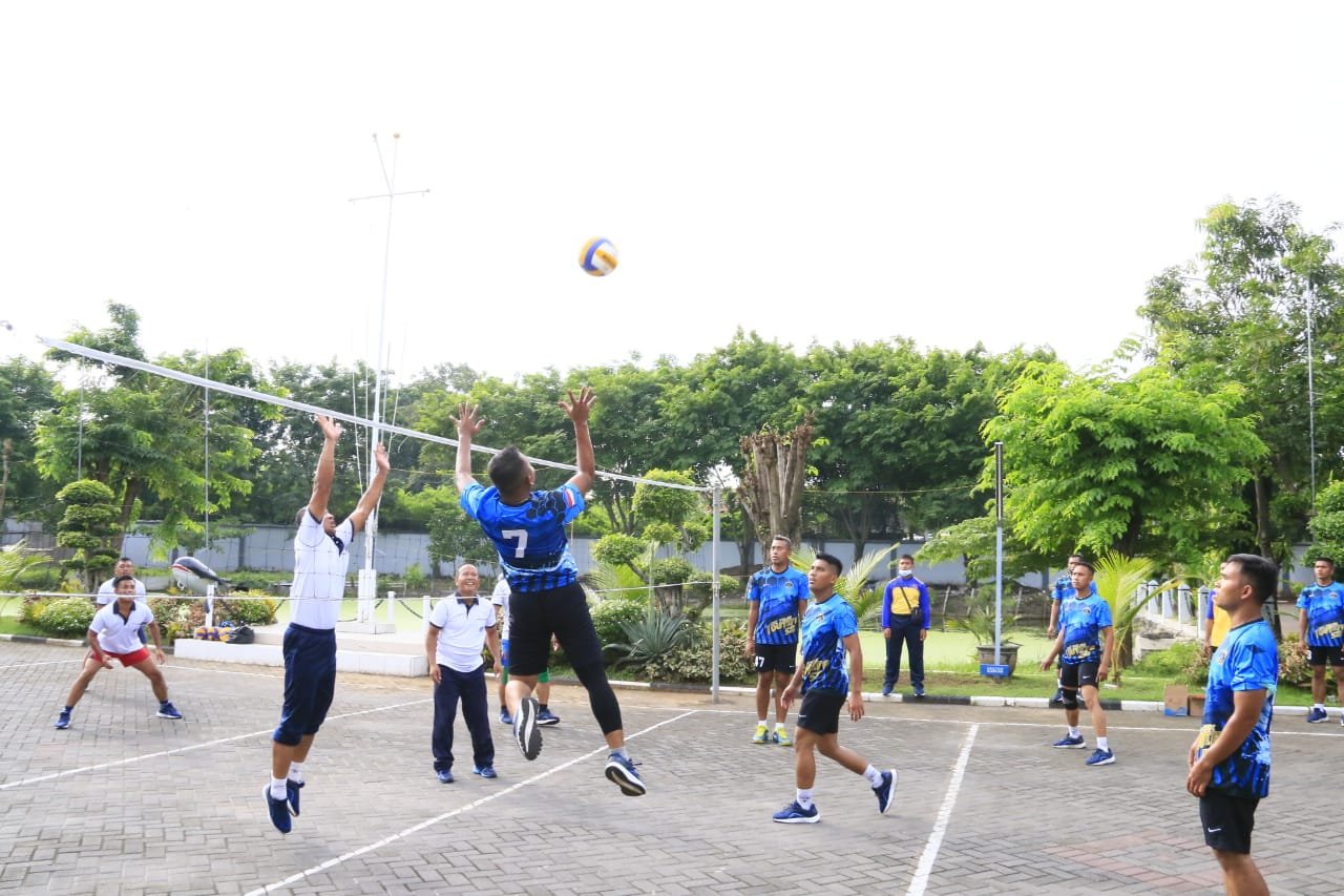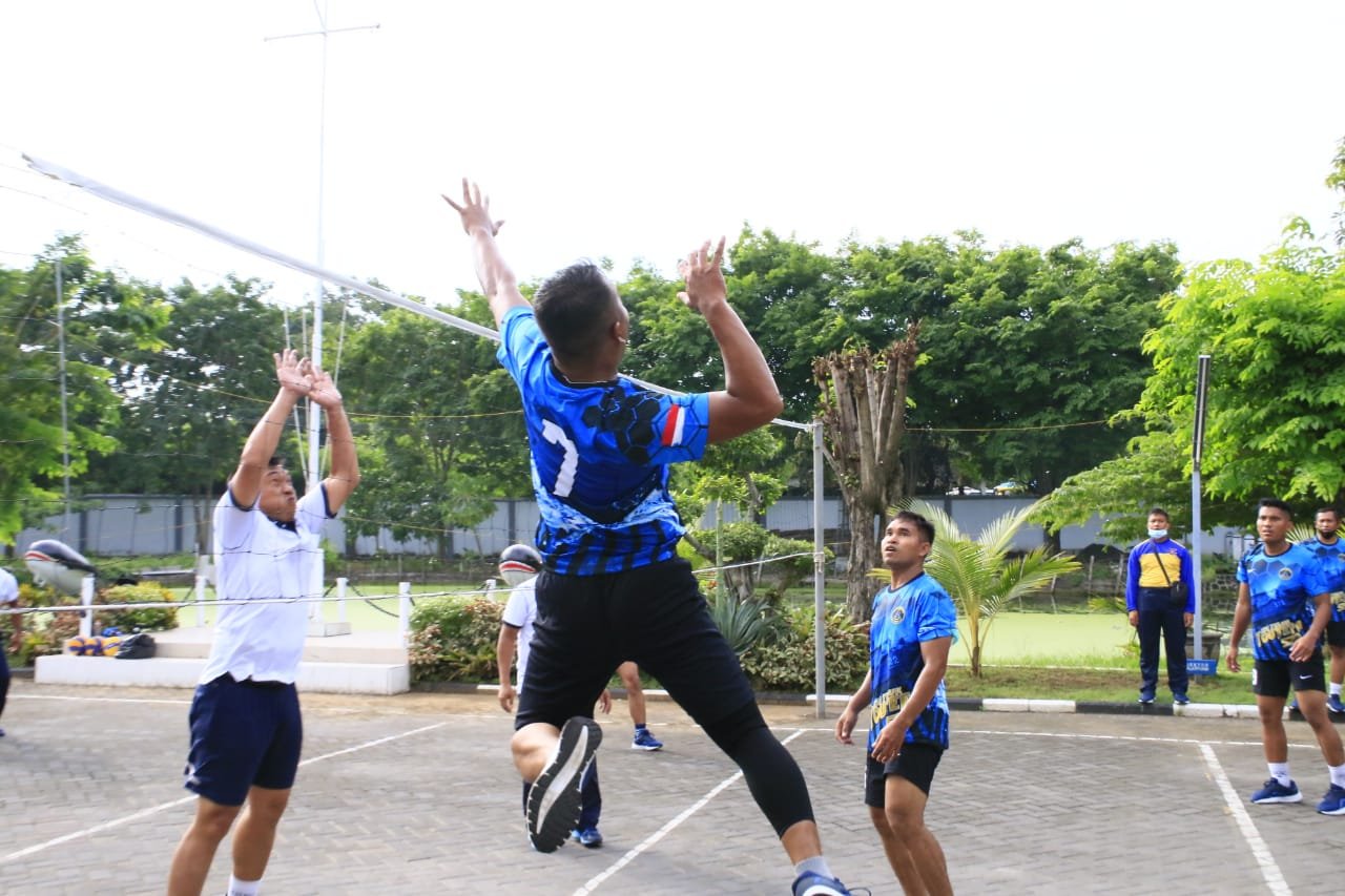 Tim bola voli KRI Teluk Youtefa-522 berhasil mengalahkan tim bola voli Satlaikmatim dengan skor 3 – 2 dalam pertandingan persahabatan yang berlangsung di Lapangan voli Satlaikmatim, Ujung, Surabaya, Jumat (14/1/2022) .