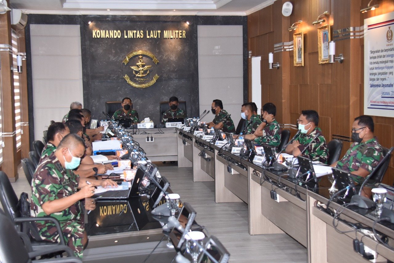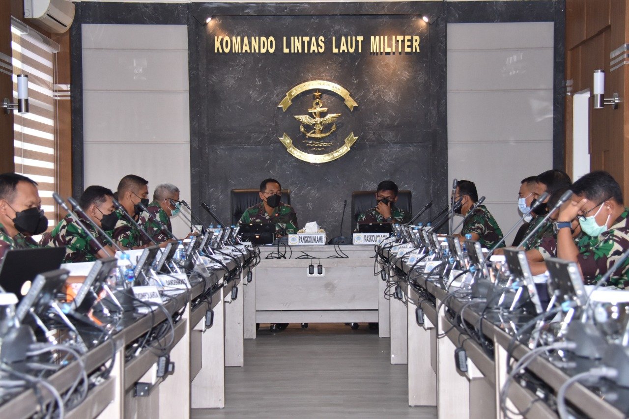 Panglima Komando Lintas Laut Militer Laksda TNI Erwin S Aldedharma memimpin rapat pembahasan Rencana Kerja dan Anggaran Kementerian/Lembaga (RKA-KL) tahun 2023 di Ruang Rapat Panglima, Mako Kolinlamil, Tanjung Priok Jakarta Utara, baru-baru ini.