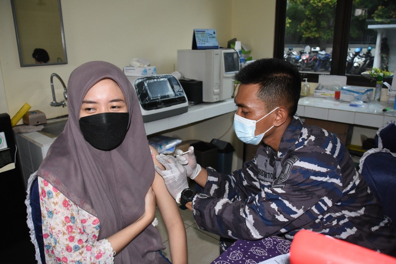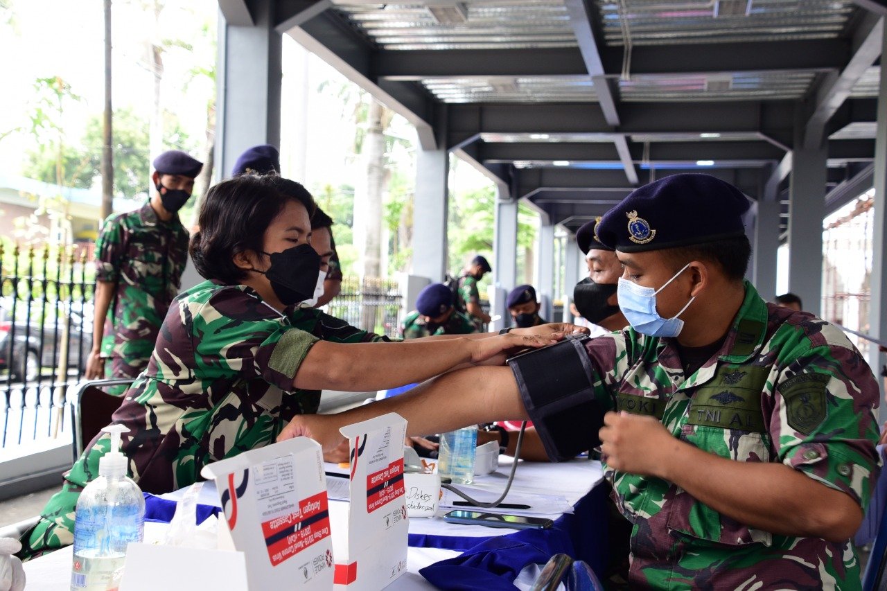 Demi mengantisipasi penyebaran virus Covid-19 varian baru dan untuk meningkatkan kekebalan komunal (Herd Immunity) di lingkungan kerja, Pusat Hidro-Oseanografi TNI AL (Pushidrosal) terus menggelar Swab Antigen dan Vaksinasi Booster di Mako Pushidrosal, Jalan Pantai Kuta V/I. Ancol Timur Jakarta Utara. Rabu (26/1/1021).