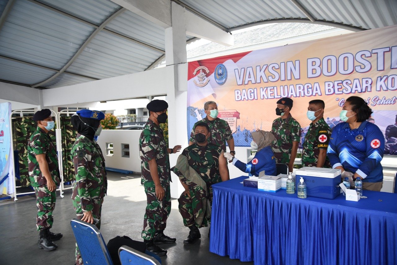 Berbagai upaya terus dilakukan Pemerintah dalam rangka memutus penyebaran mata rantai COVID-19 di Indonesia. Terlebih lagi dengan munculnya varian baru, Omicron yang kasusnya telah ditemukan di sejumlah kota di Indonesia. Khusus di Ibu Kota Jakarta pasien yang terpapar varian Omicron terus meningkat secara signifikan, hal tersebut segera diantisipasi TNI Angkatan Laut dari jajaran Komando Lintas Laut Militer dengan menggelar vaksin dosis booster kepada seluruh keluarga besar Kolinlamil di Mako Kolinlamil, Tanjung Priok, Jakarta Utara, Kamis (27/1/2022).